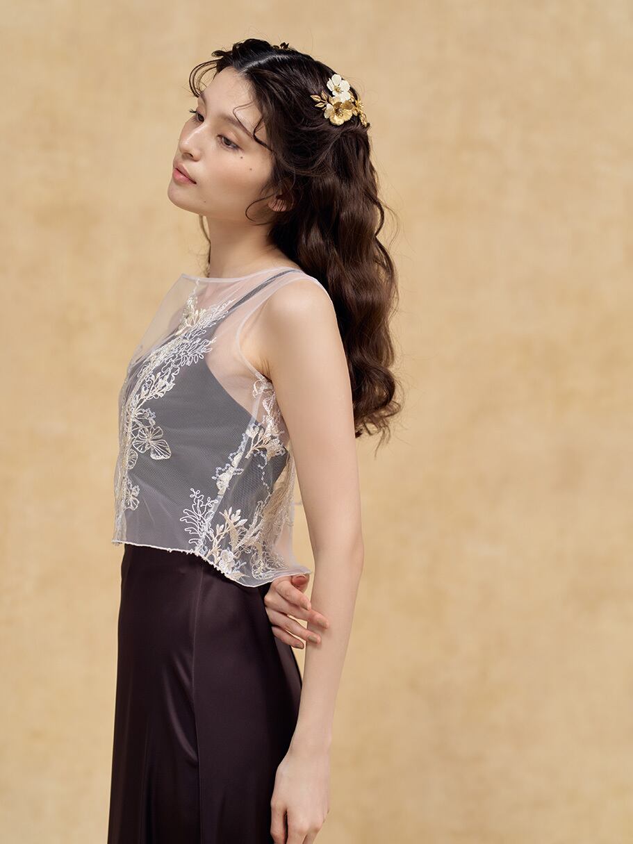 美品!2点セット 繊細レース オーバードレス 2WAYカラードレス キャミソール スレンダーライン パーティードレス 前撮り/コンサート/ダンスドレス | David1021k Dress(ダヴィドレス)