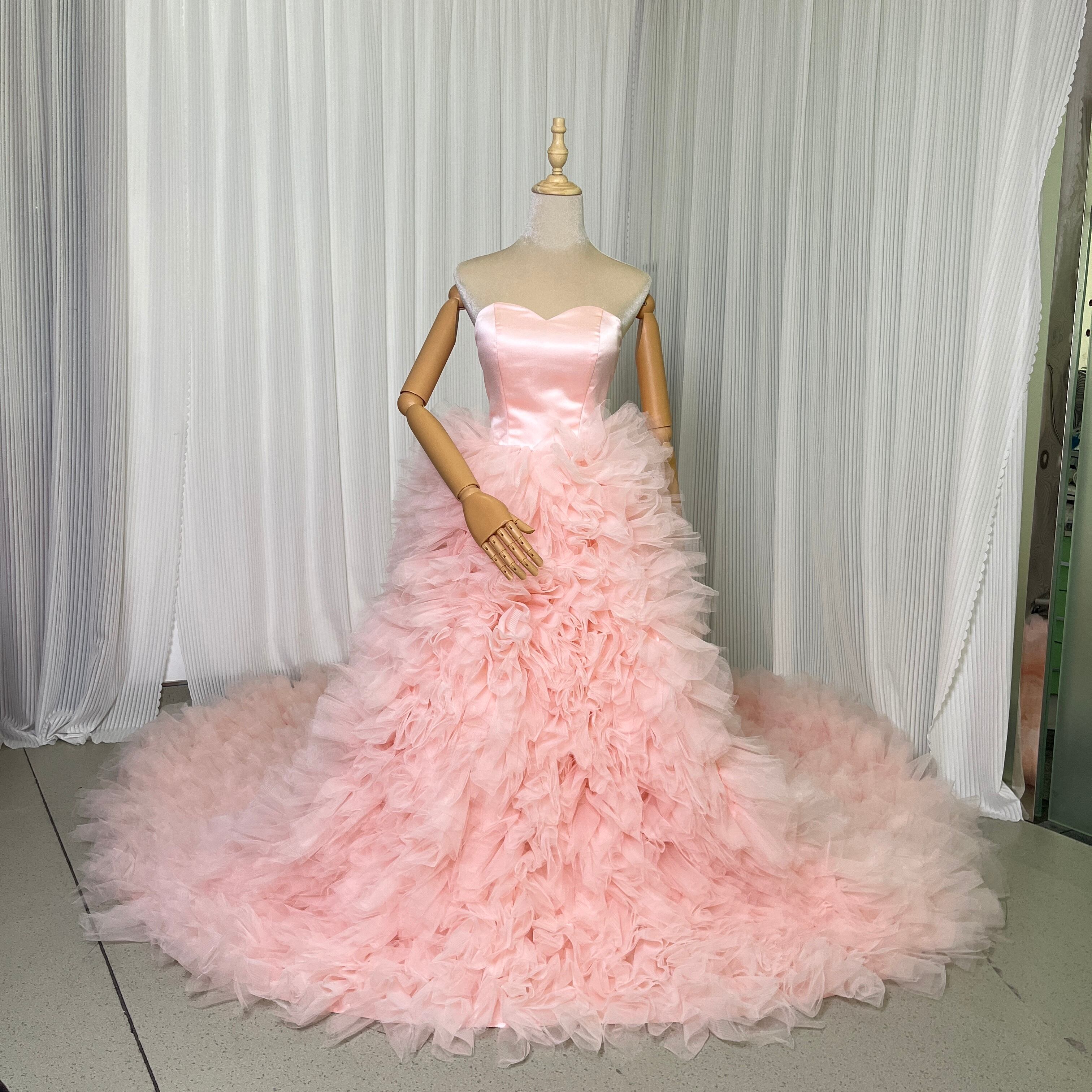 薄ピンク ベアトップ カラードレス ふわふわチュールドレス お色直し もこもこドレス 前撮り/フォトウエディング