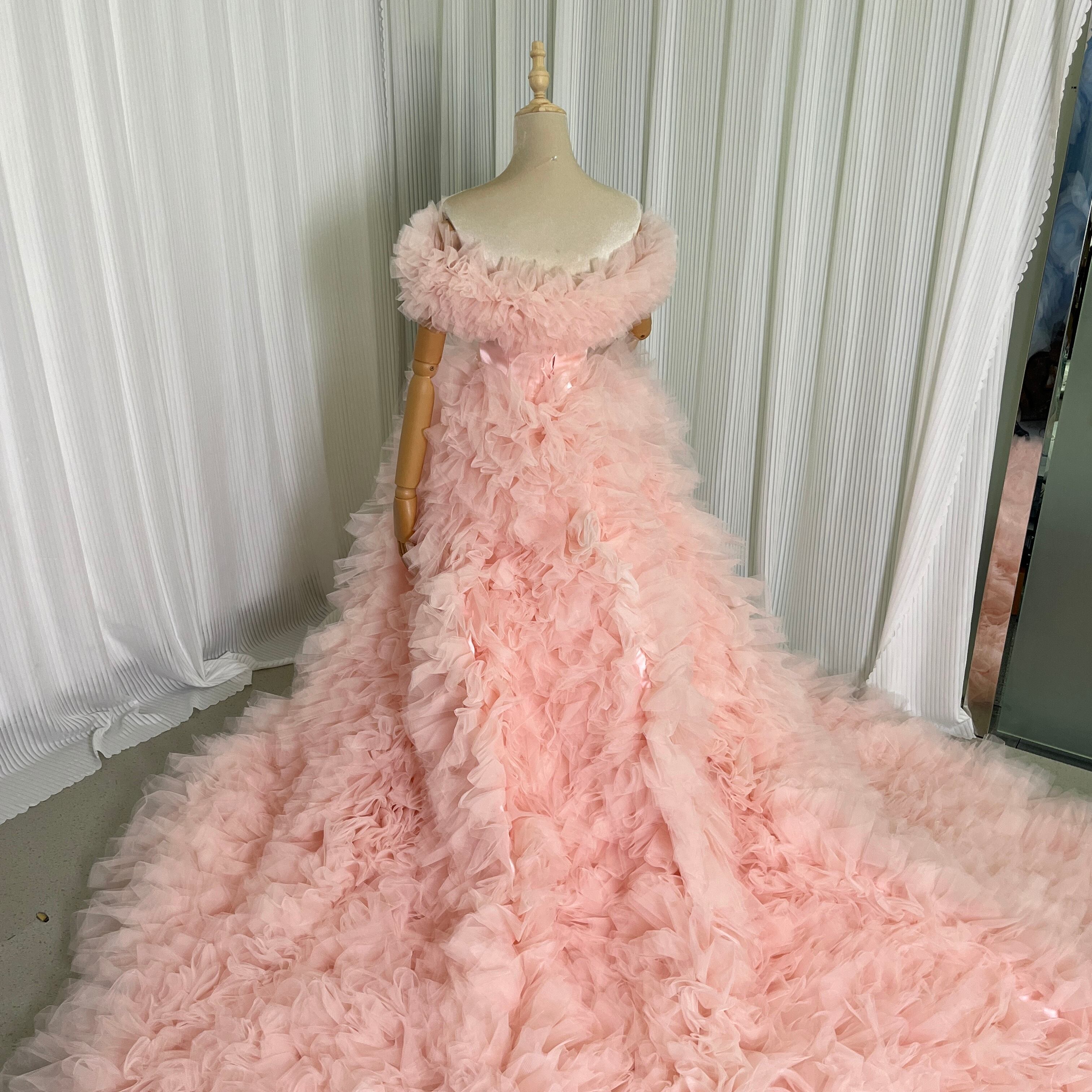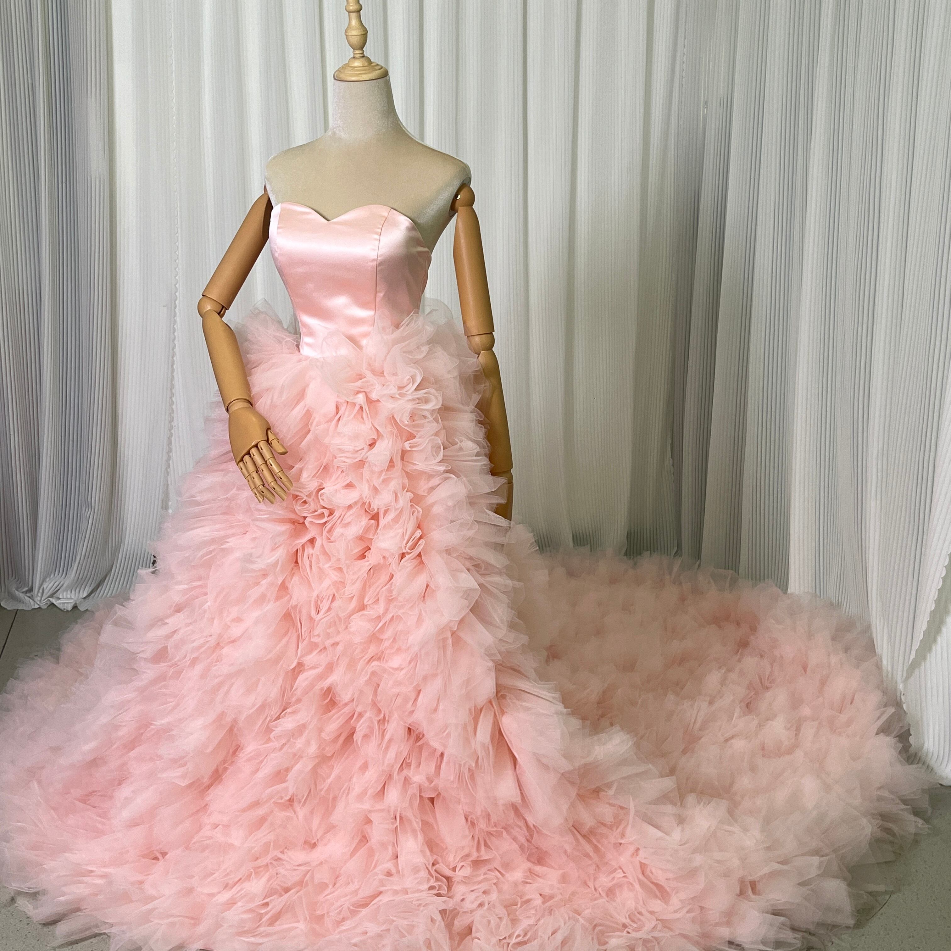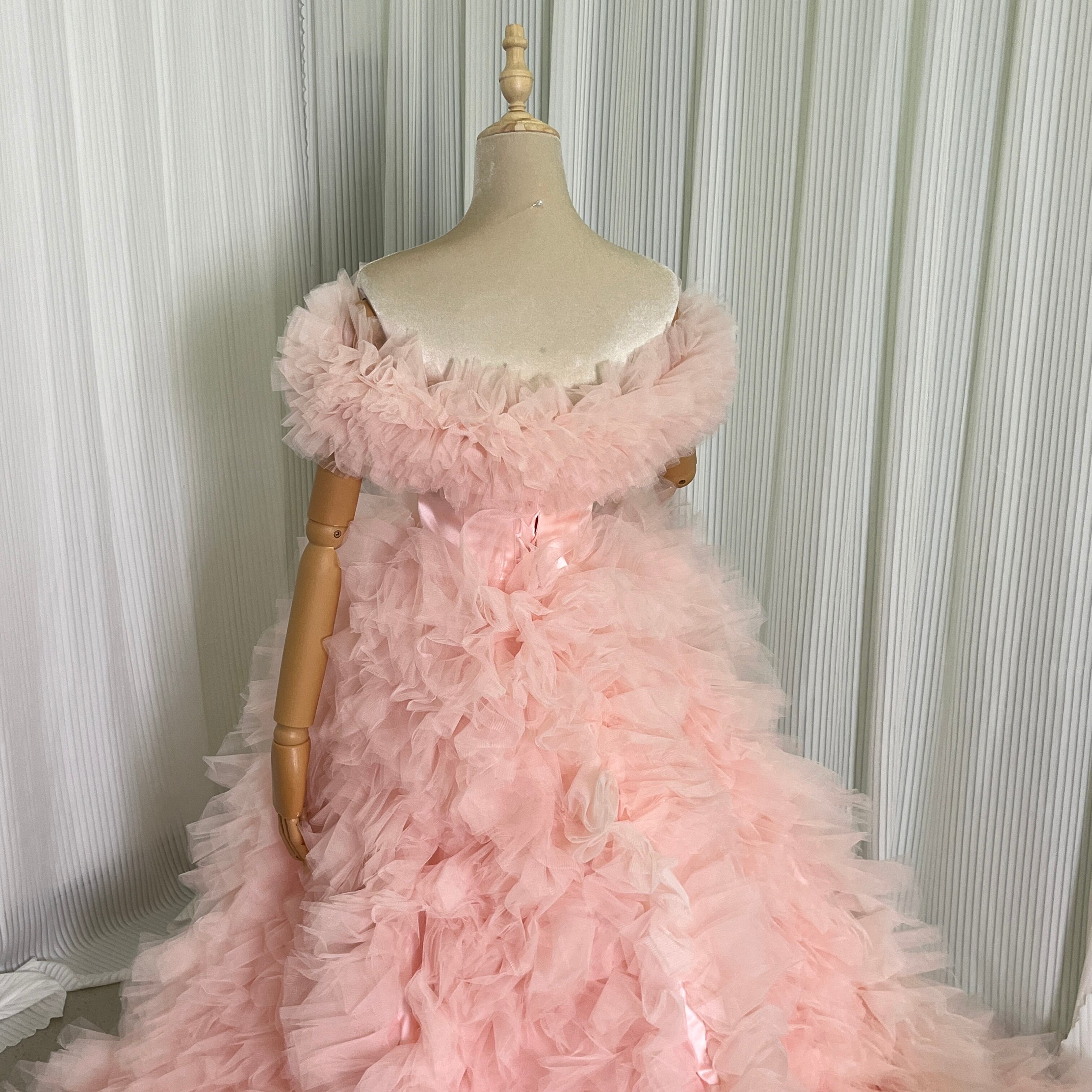 薄ピンク 取り外しオフショルダー カラードレス ふわふわチュールドレス お色直し もこもこドレス