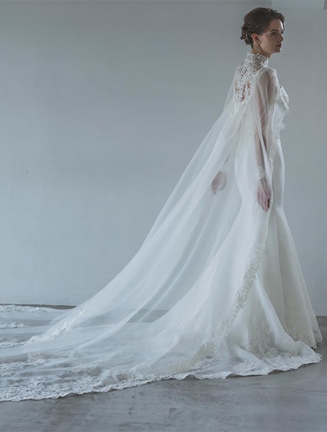 高品質!繊細レース マントトレーン 3点セットのウエディングドレス ロングスリーブボレロ マーメイドドレス スレンダーライン ロングトレーン 花嫁/前撮り 教会式