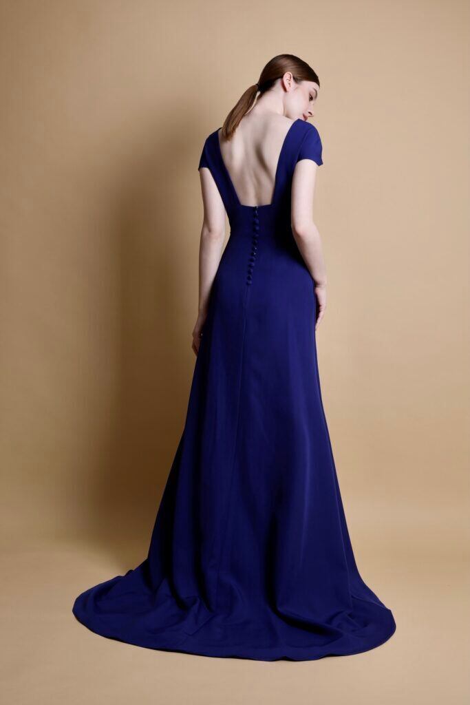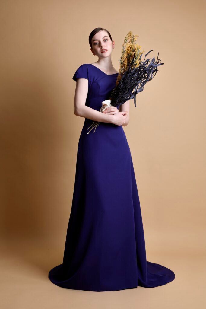 高貴なロイヤルブルー!大人っぽいカラードレス ネイビーブルー スレンダーライン トレーン マザーズドレス パーティードレス 前撮り/コンサート/二次会【オーダーメイド可能】 | David1021k Dress(ダヴィドレス)
