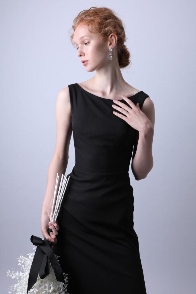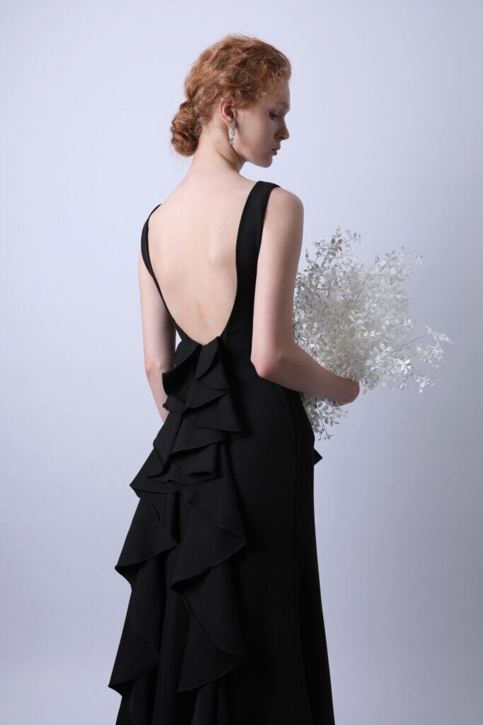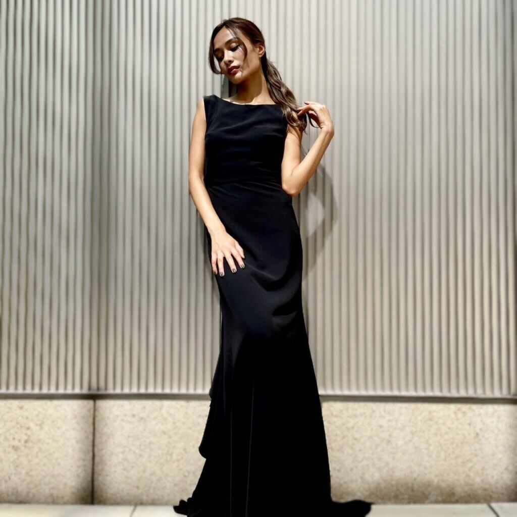 高品質!縦フリル ブラック/黒カラードレス 優雅なシルエット ノースリーブ ソフトマーメイド ラウンドネック マザーズドレス パーティードレス 前撮り/演奏会/二次会 | David1021k Dress(ダヴィドレス)