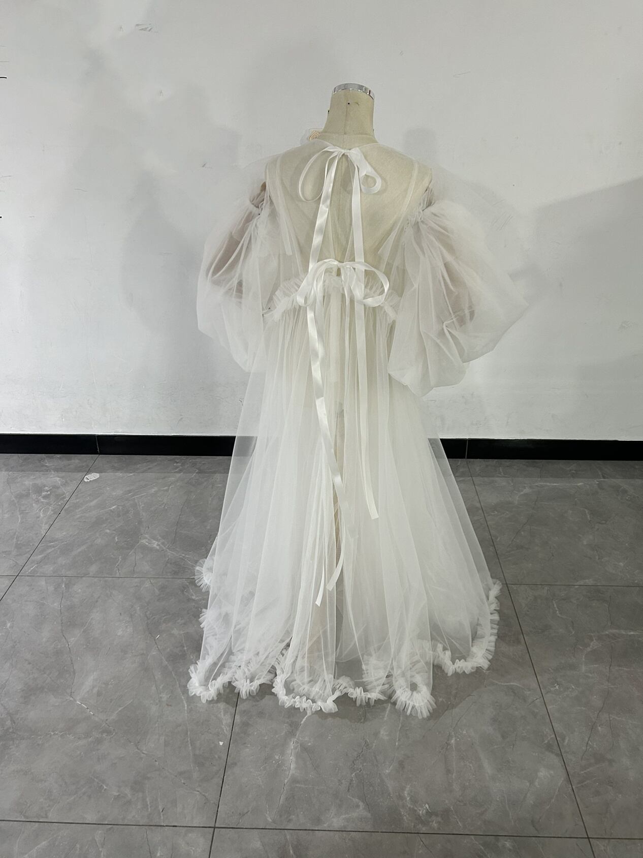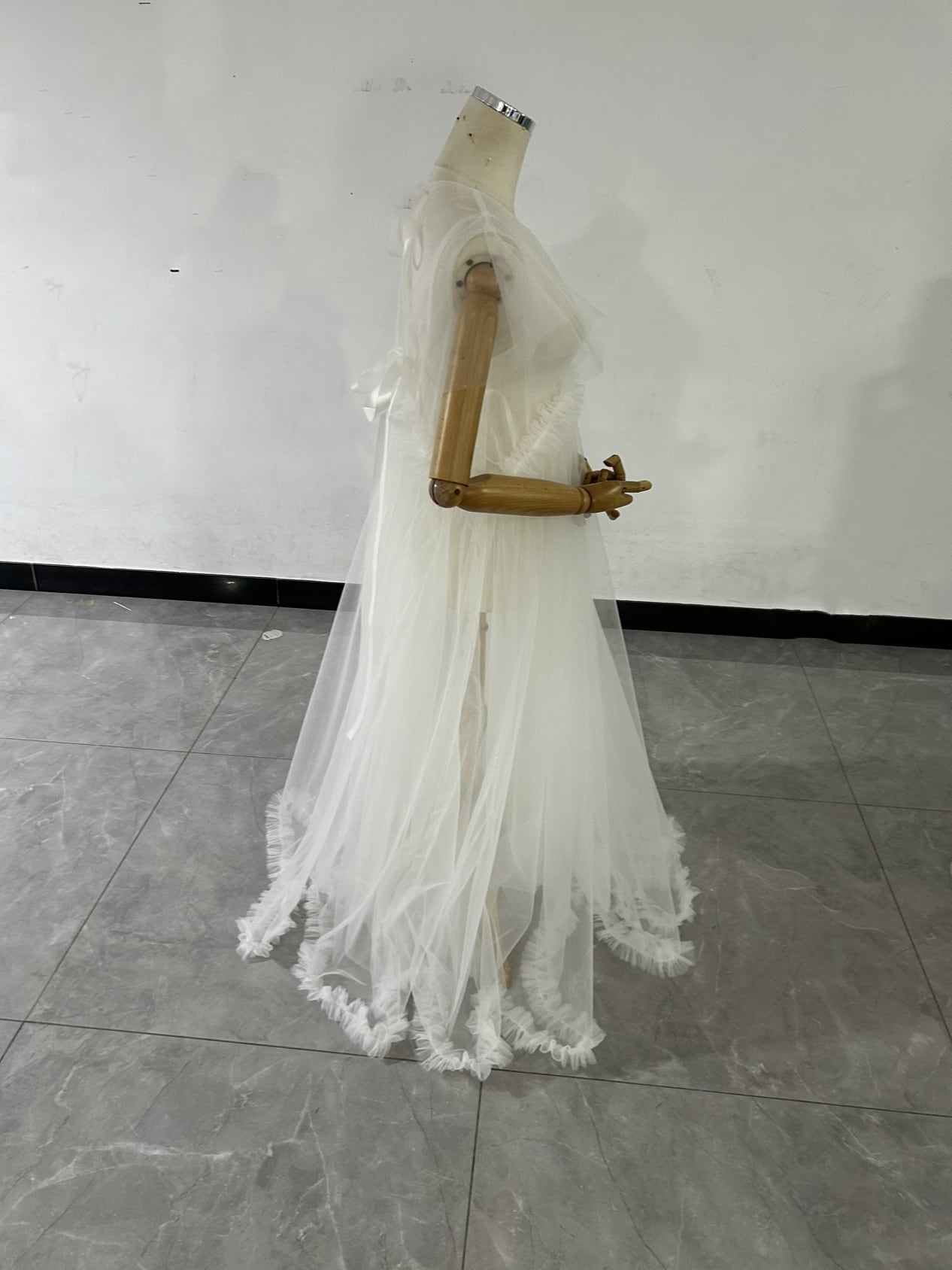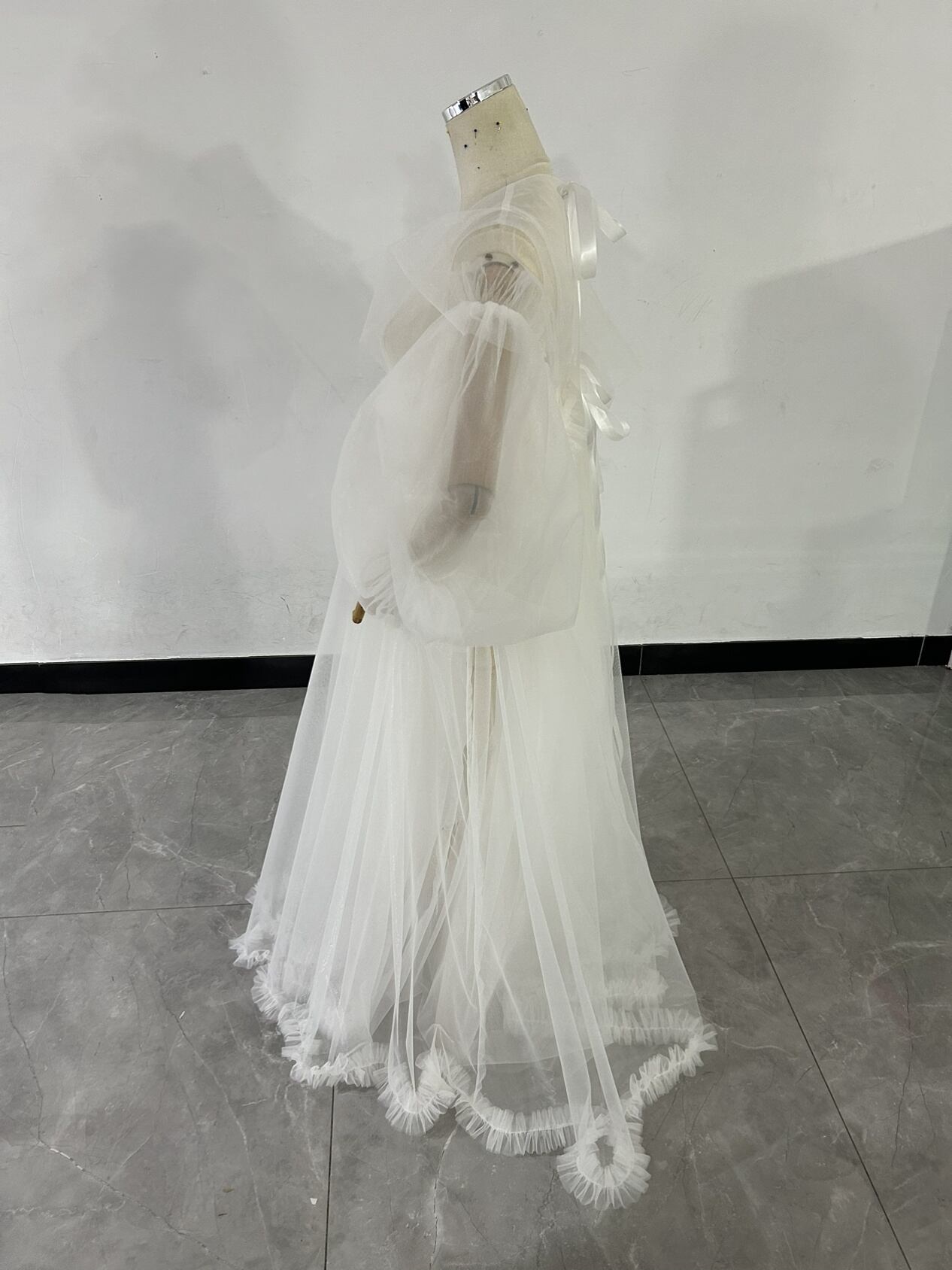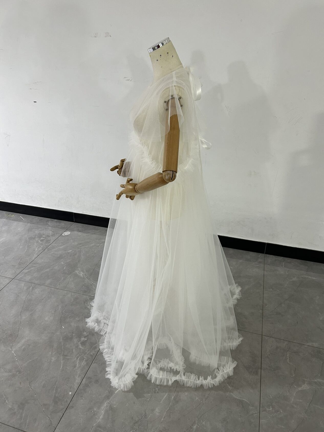 高品質!妊婦ドレス マタニティドレス 写真撮影 オフホワイト シースルー ソフトチュール オーダーメイド オーバードレス