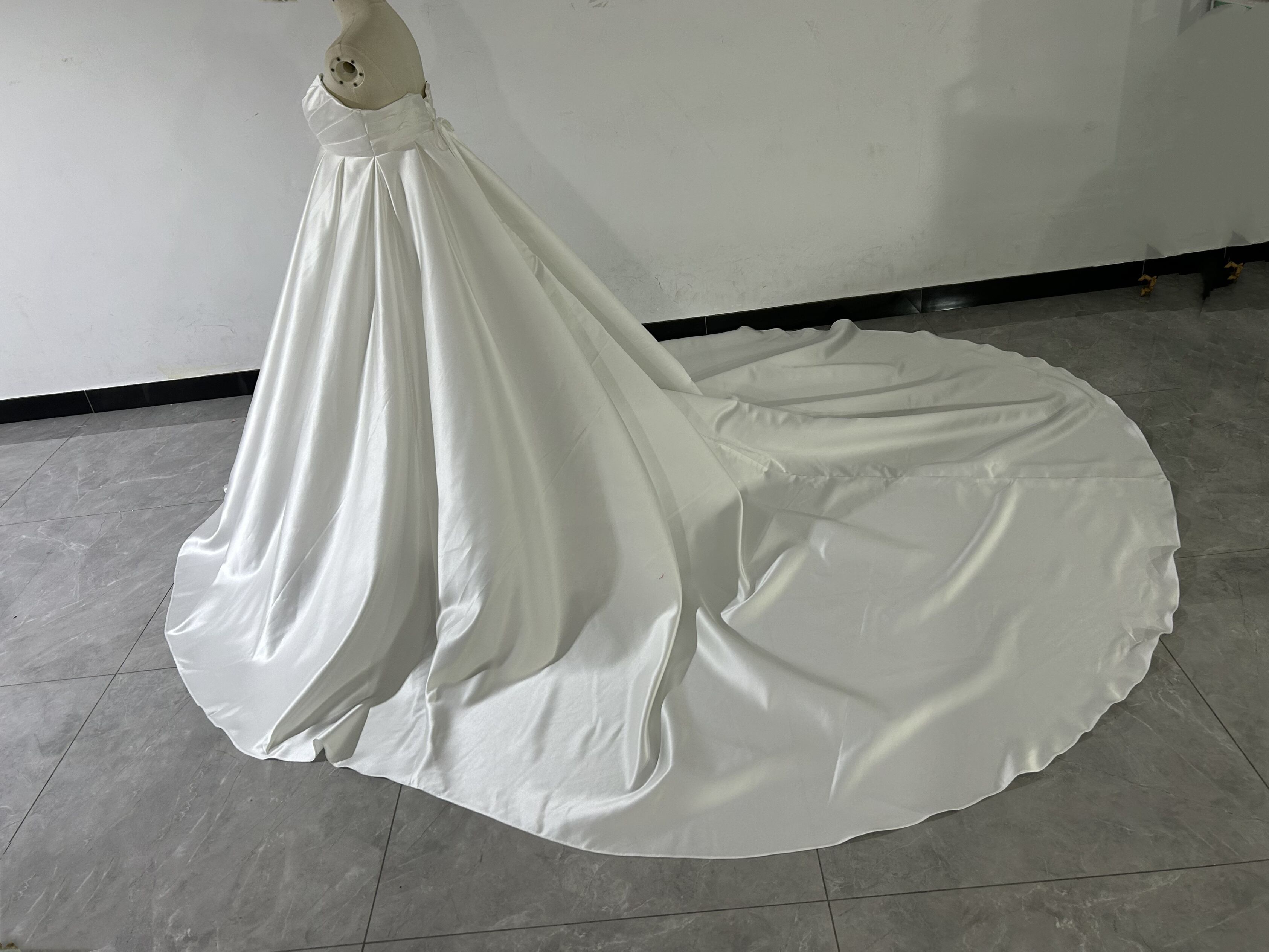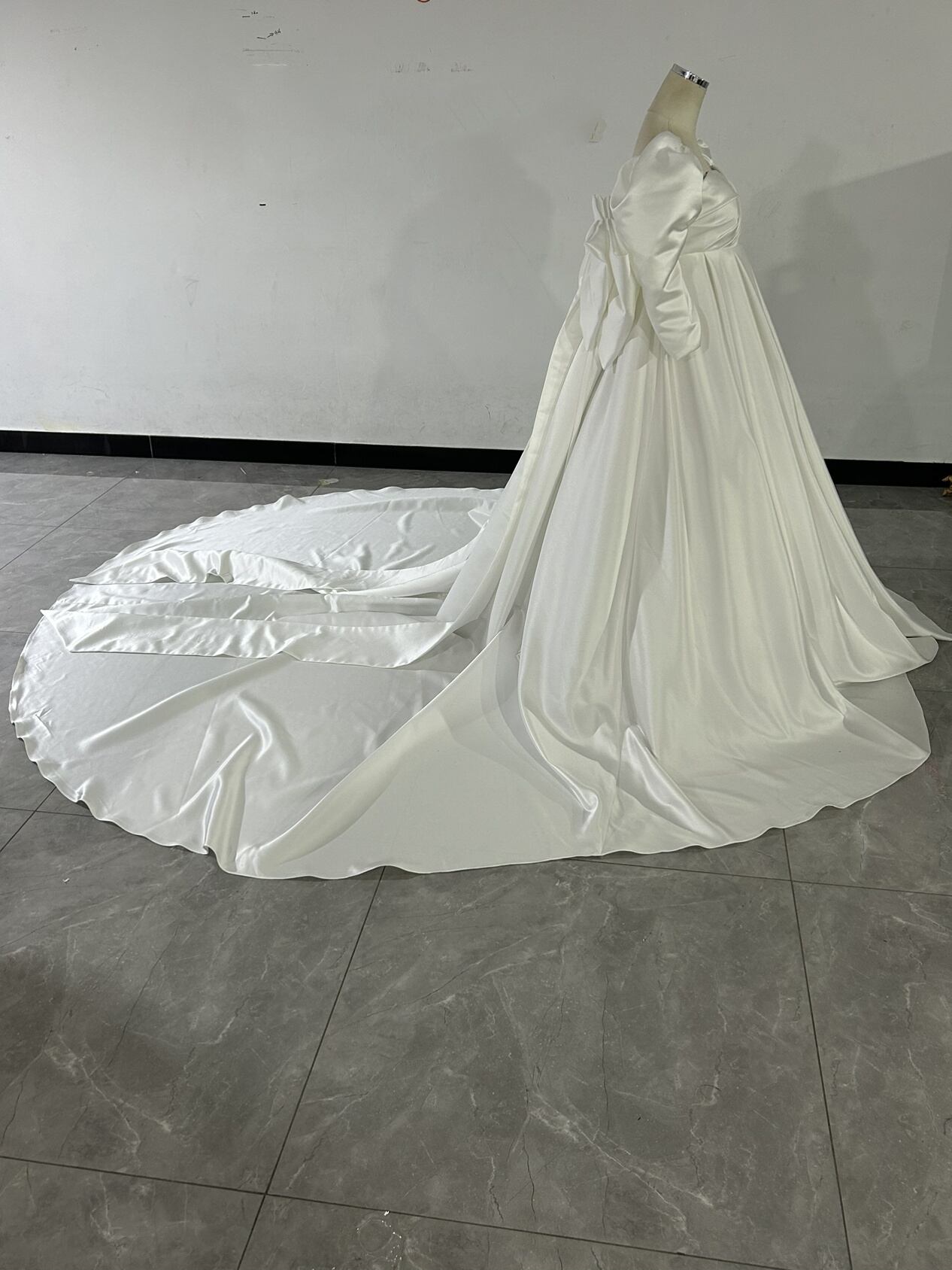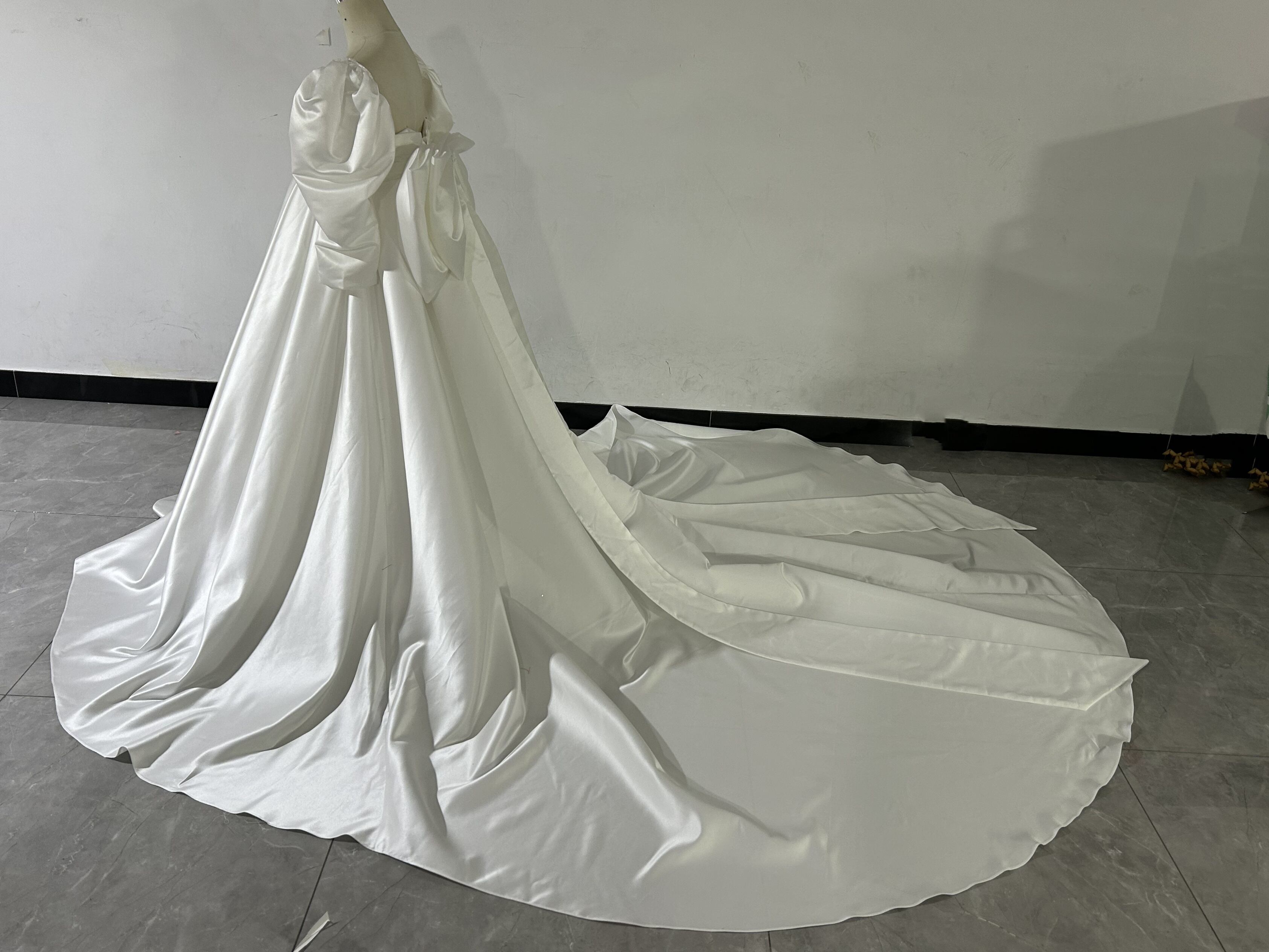 人気上昇! オフホワイト ウエディングドレス ふっくら柔らかなバックリボン 取り外し袖花嫁 豪華 結婚式/前撮り
