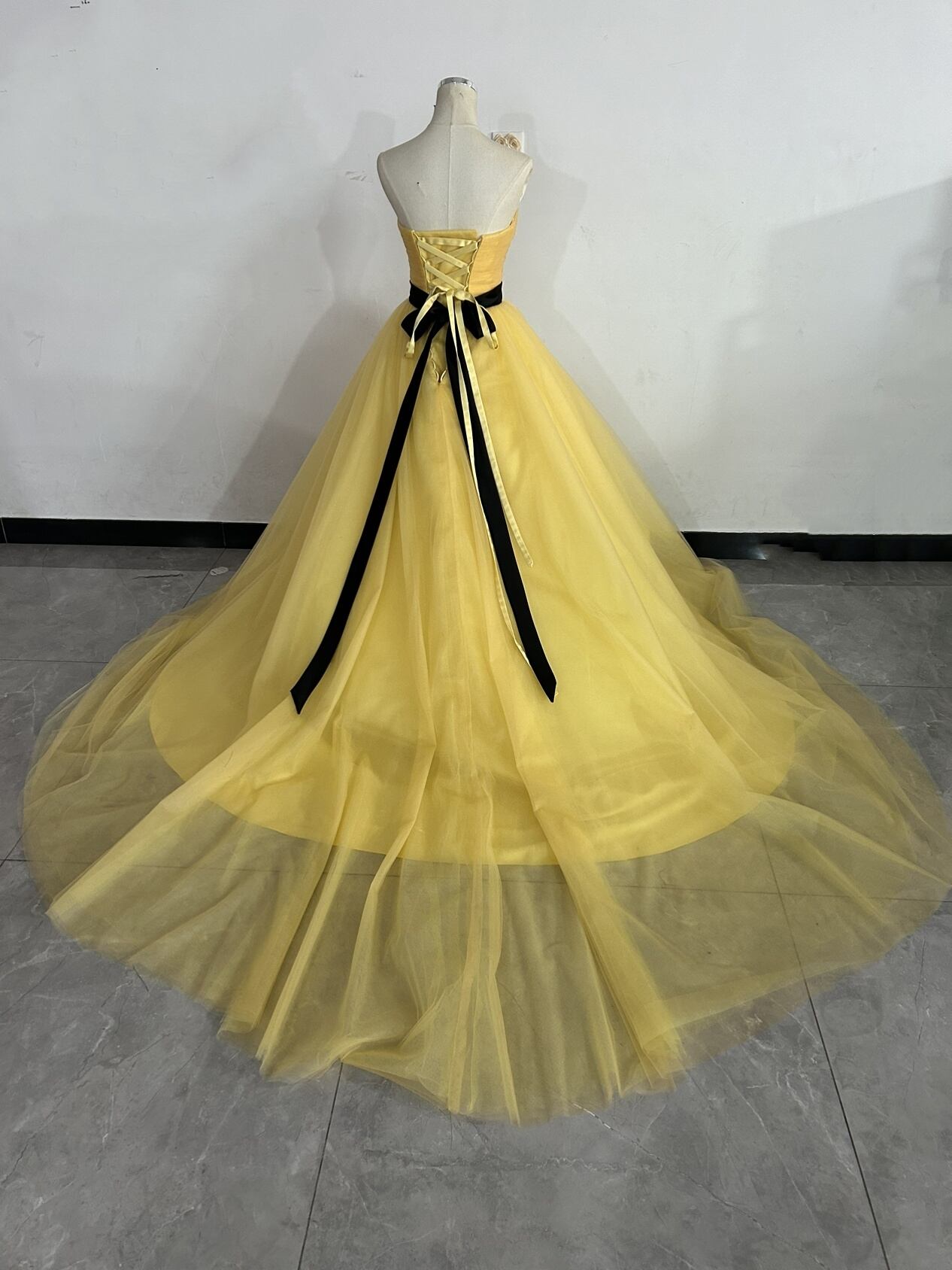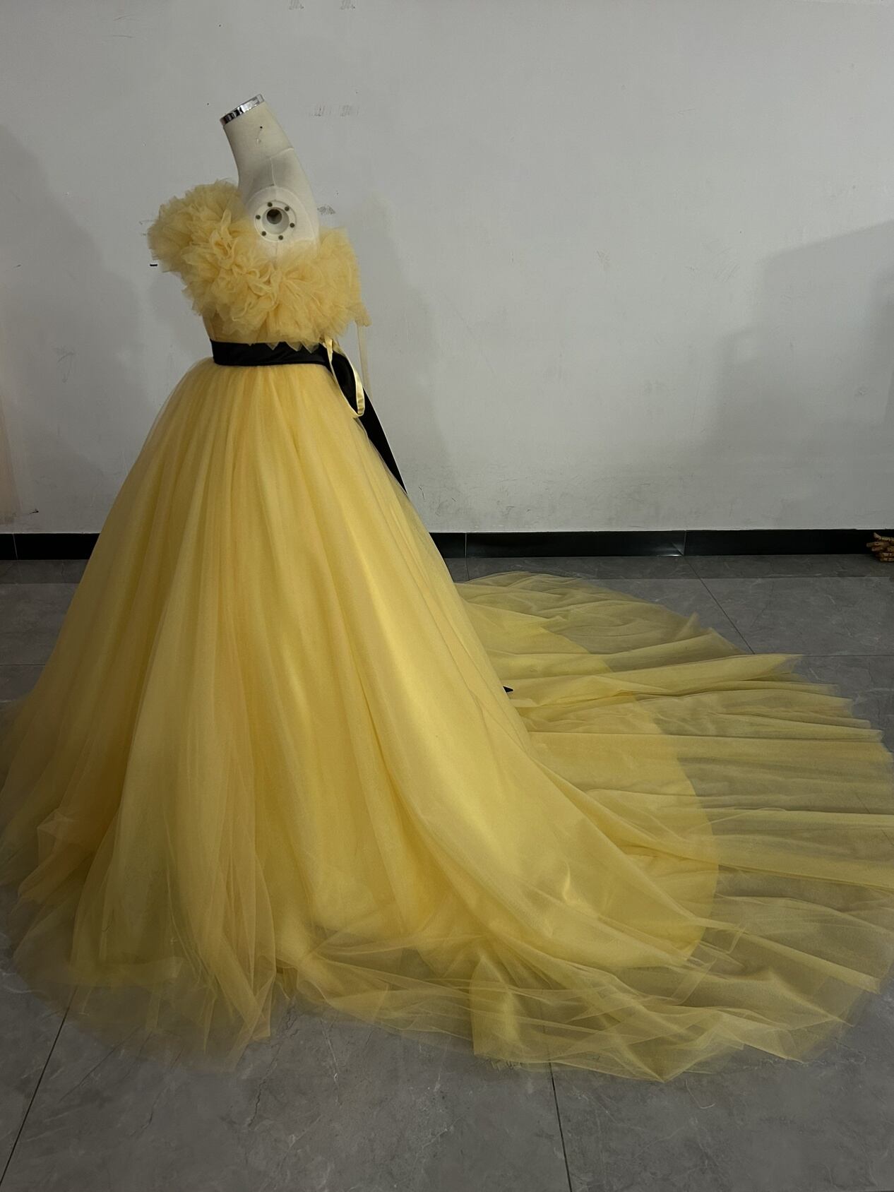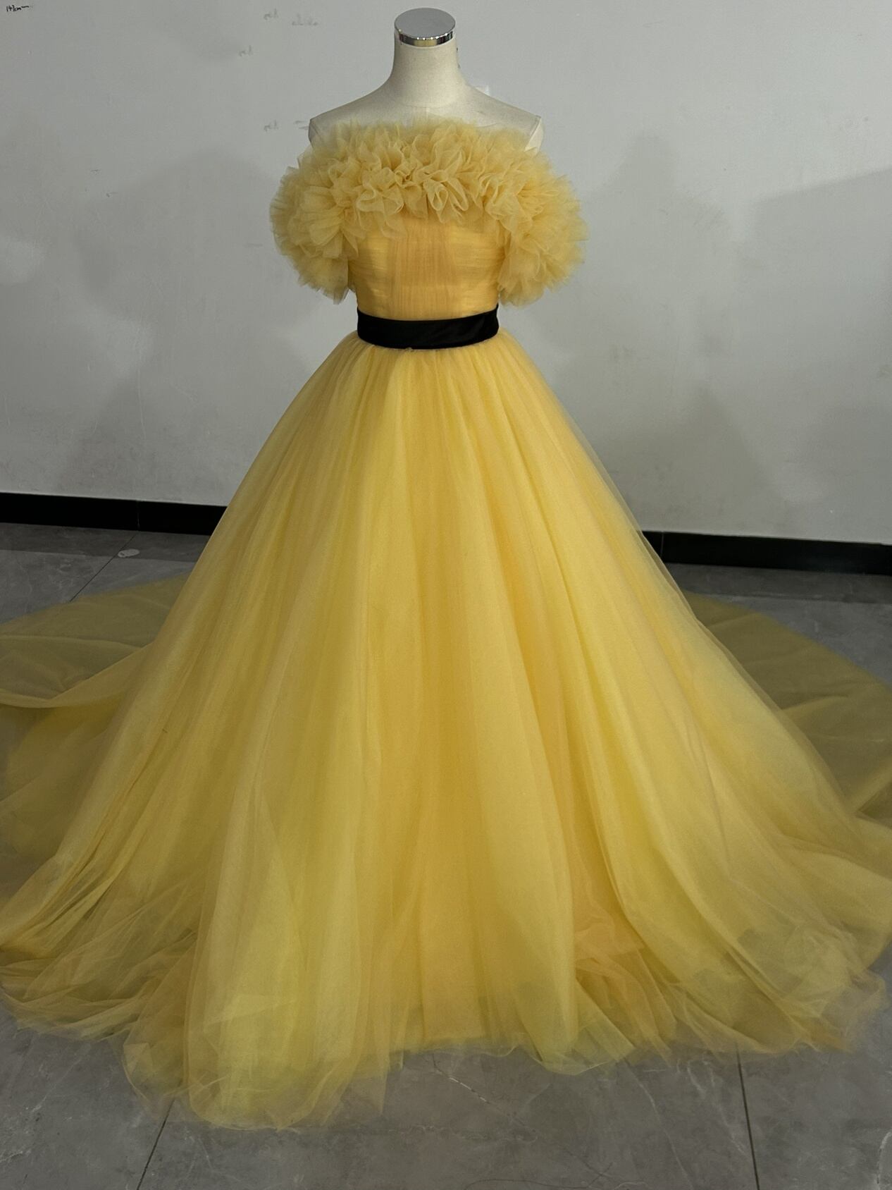 カラードレス イエロー 3ways 取り外しオフショルダー+サッシュベルト お姫様を思わせるロマンティックなプリンセス