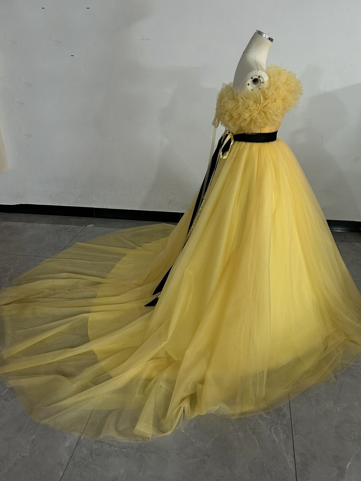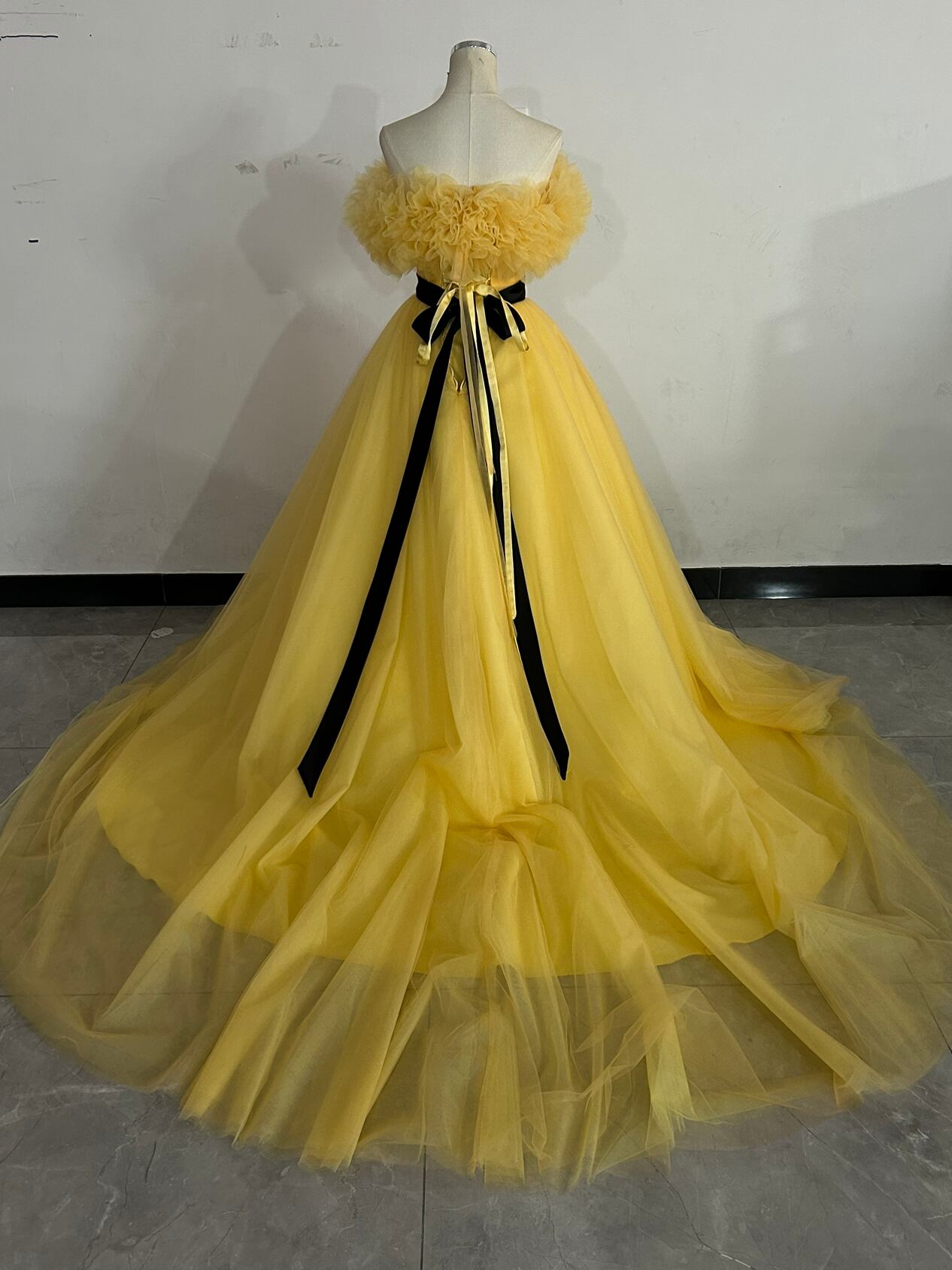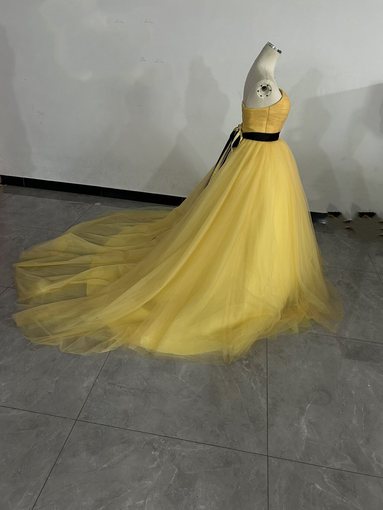 カラードレス イエロー 3ways 取り外しオフショルダー+サッシュベルト お姫様を思わせるロマンティックなプリンセス