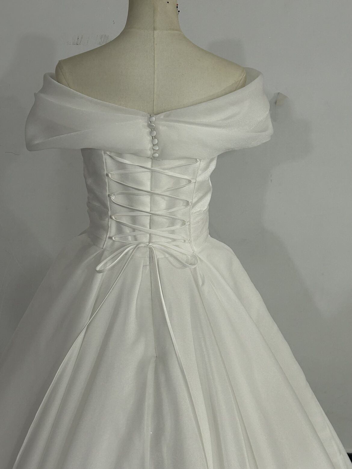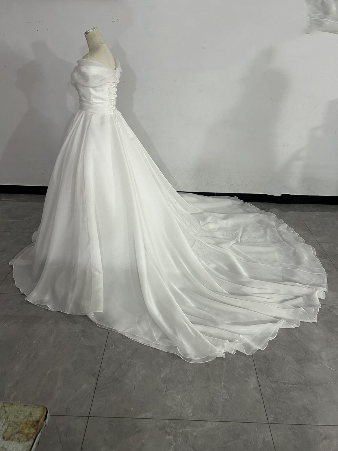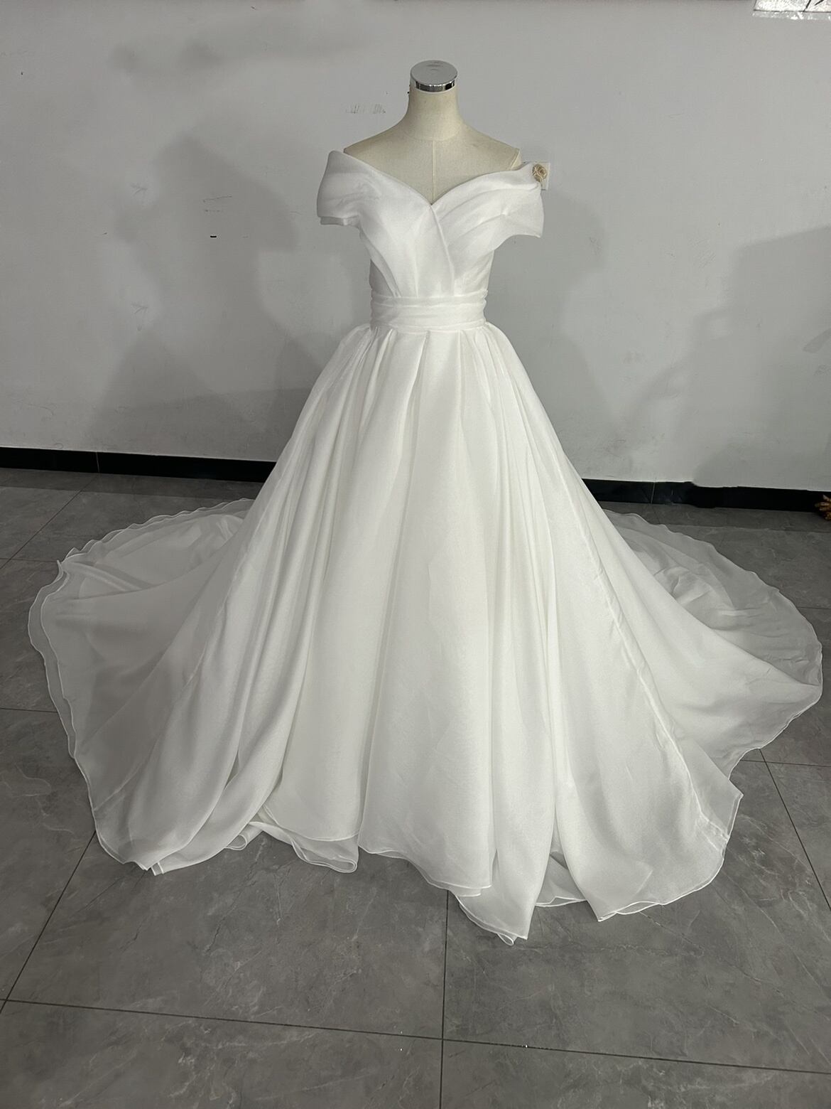 人気上昇! オフホワイト 上質扬州纱 Vネック ウエディングドレス 優雅 ハンド花嫁 豪華 結婚式/前撮り