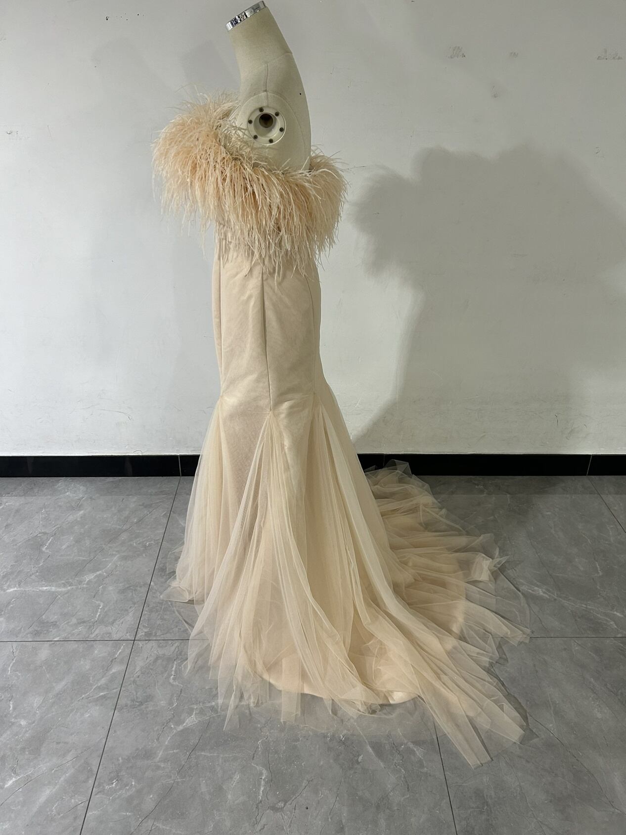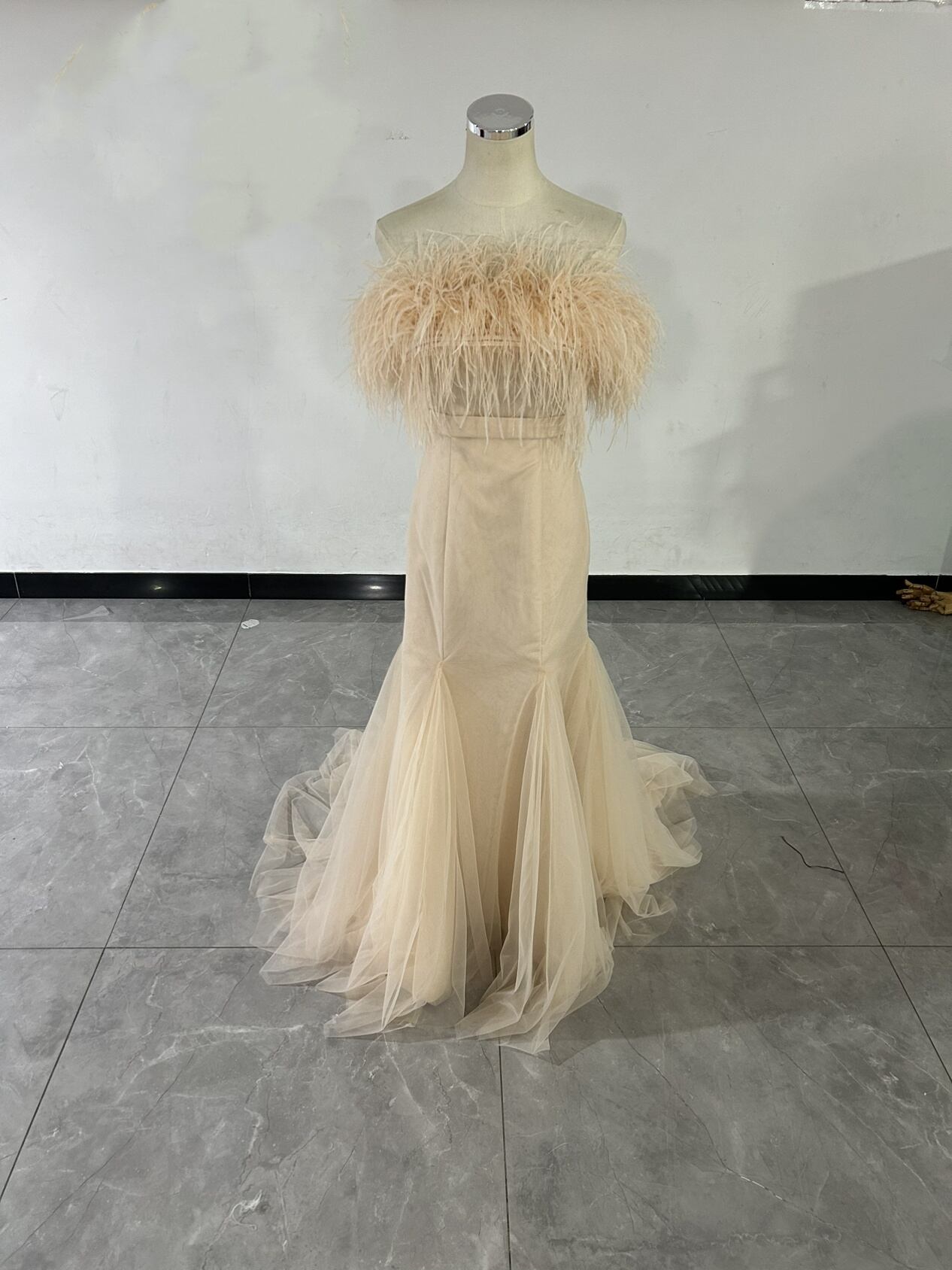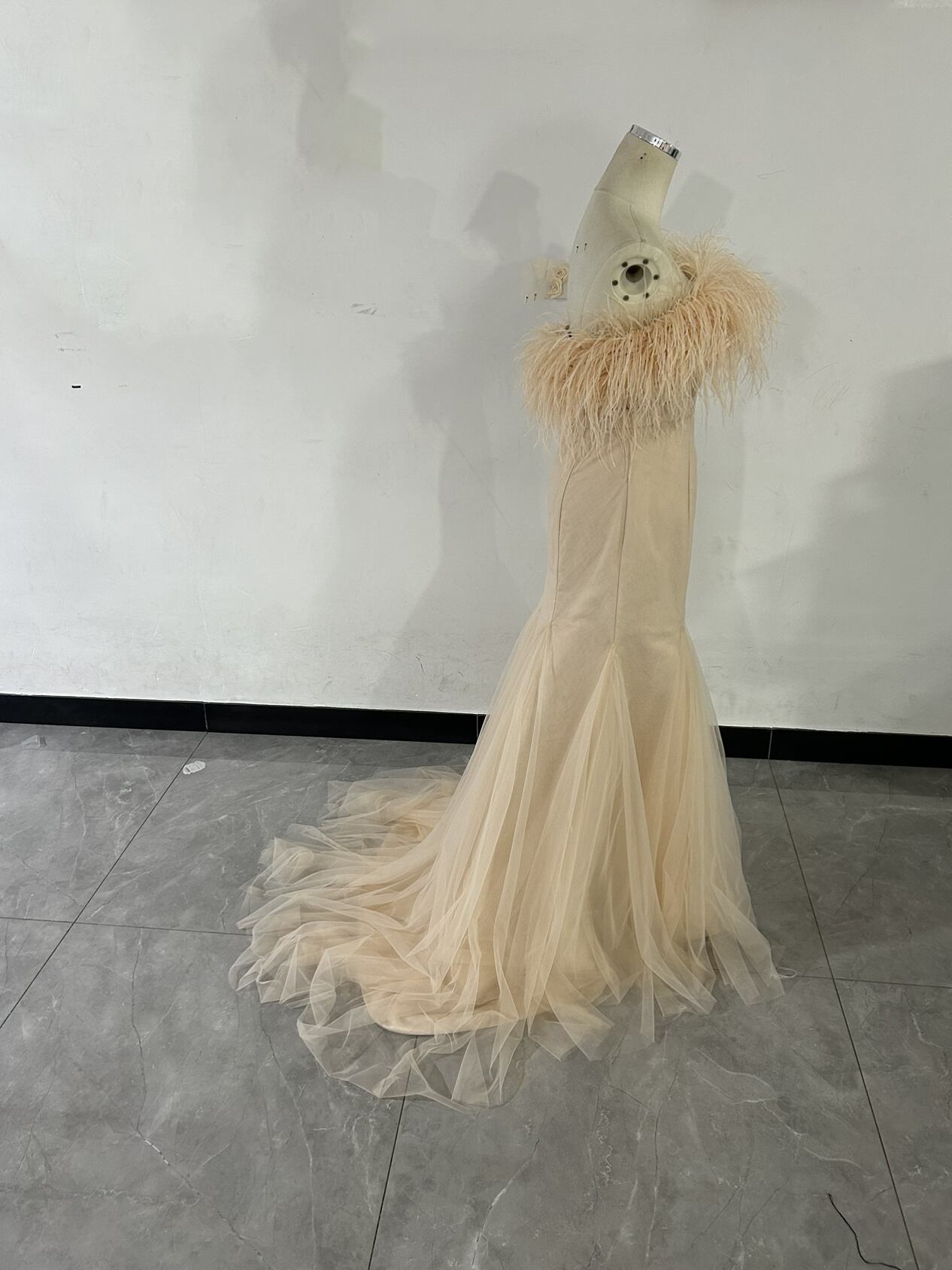 送料無料!人気上昇!カラードレス 羽フェザーマーメイド 玉ピンク パーティー/結婚式/披露宴