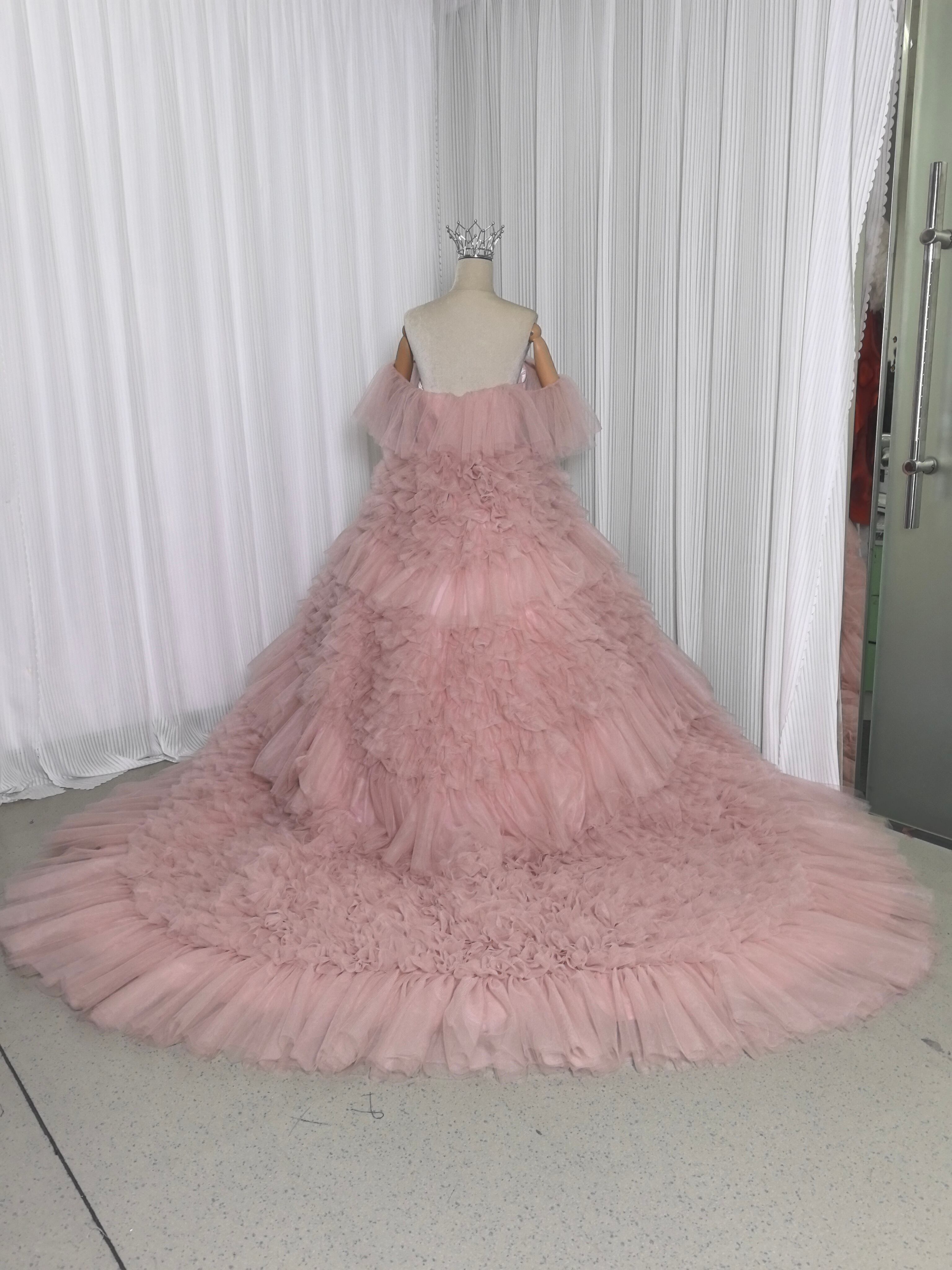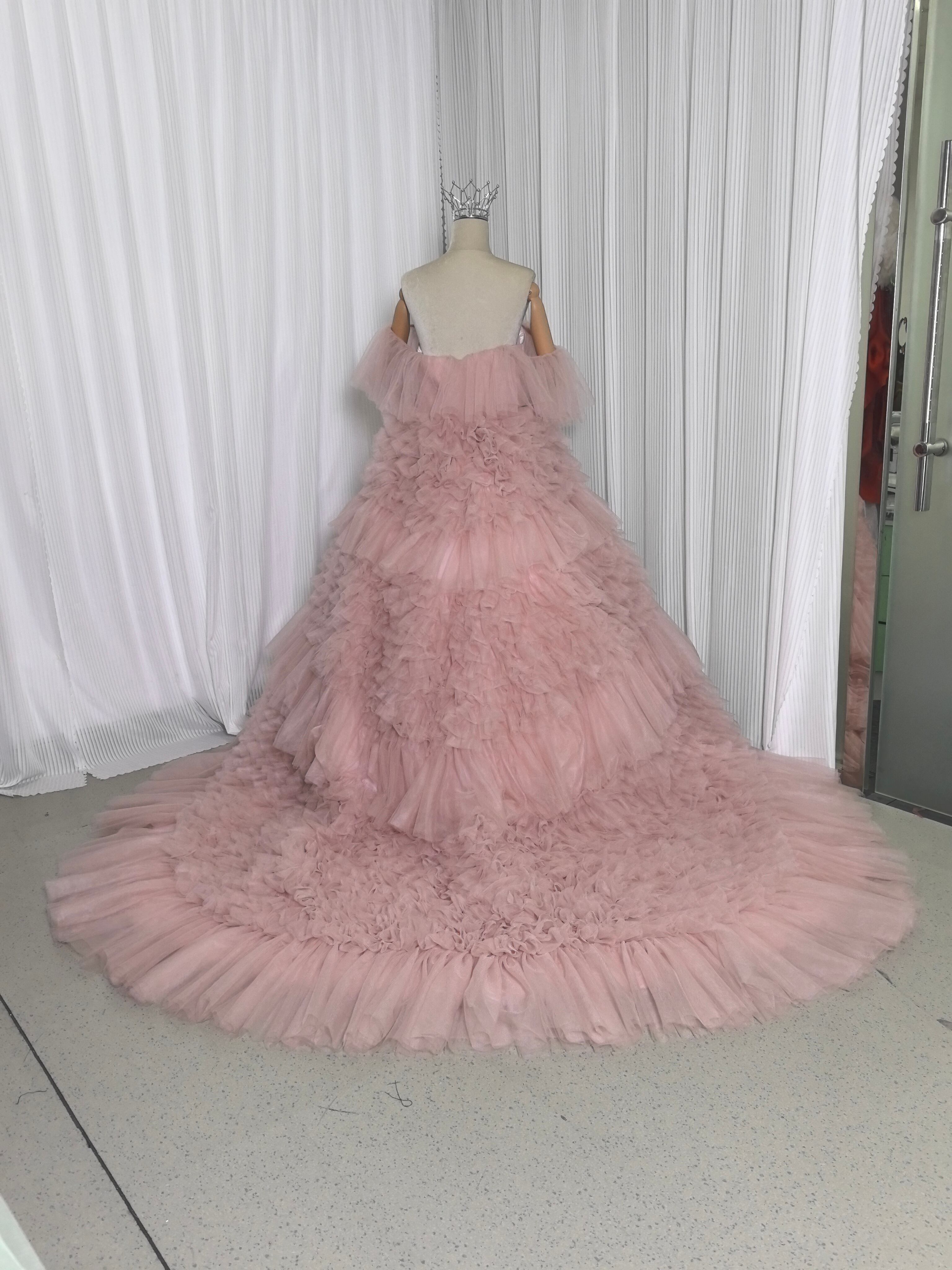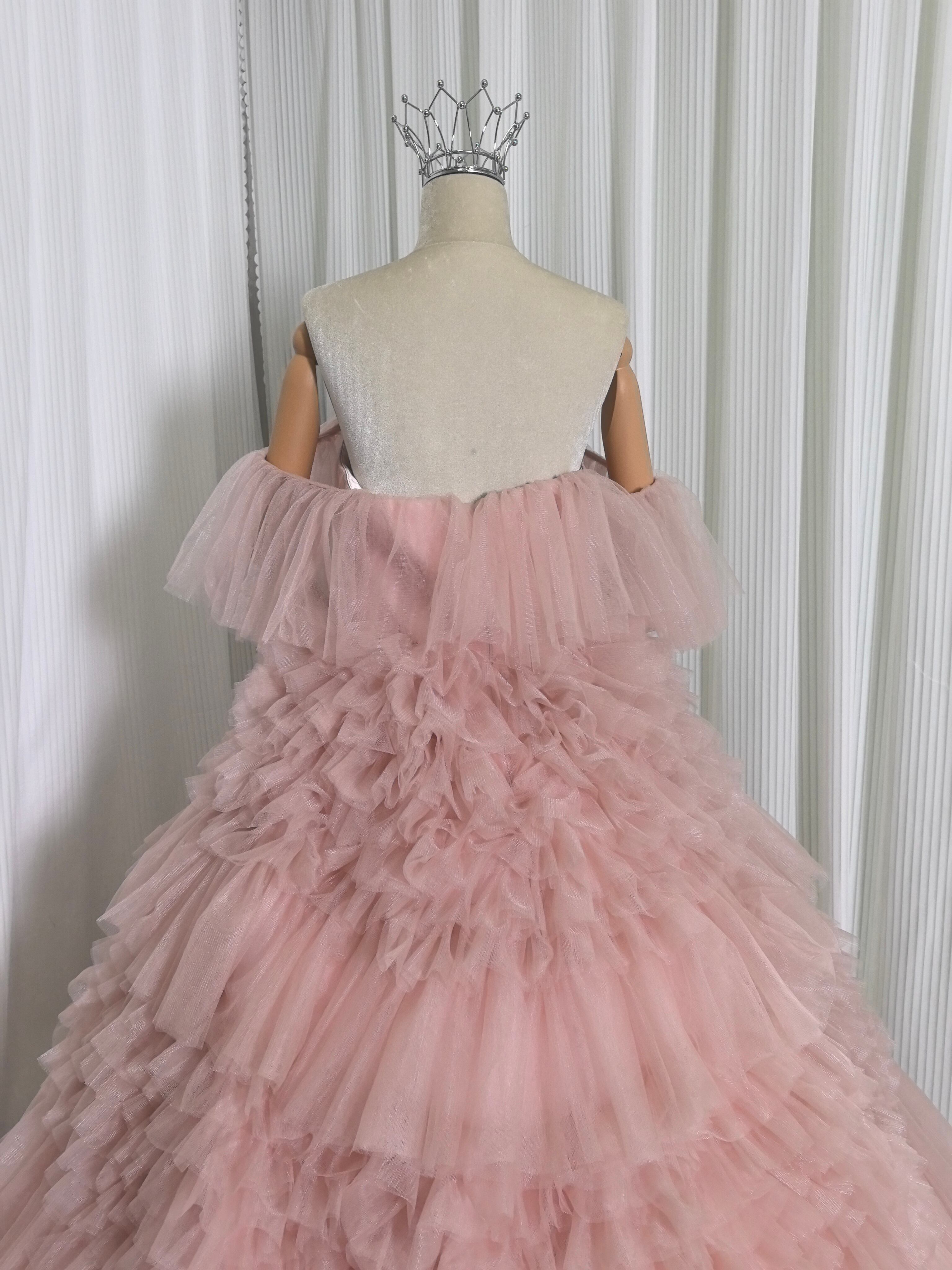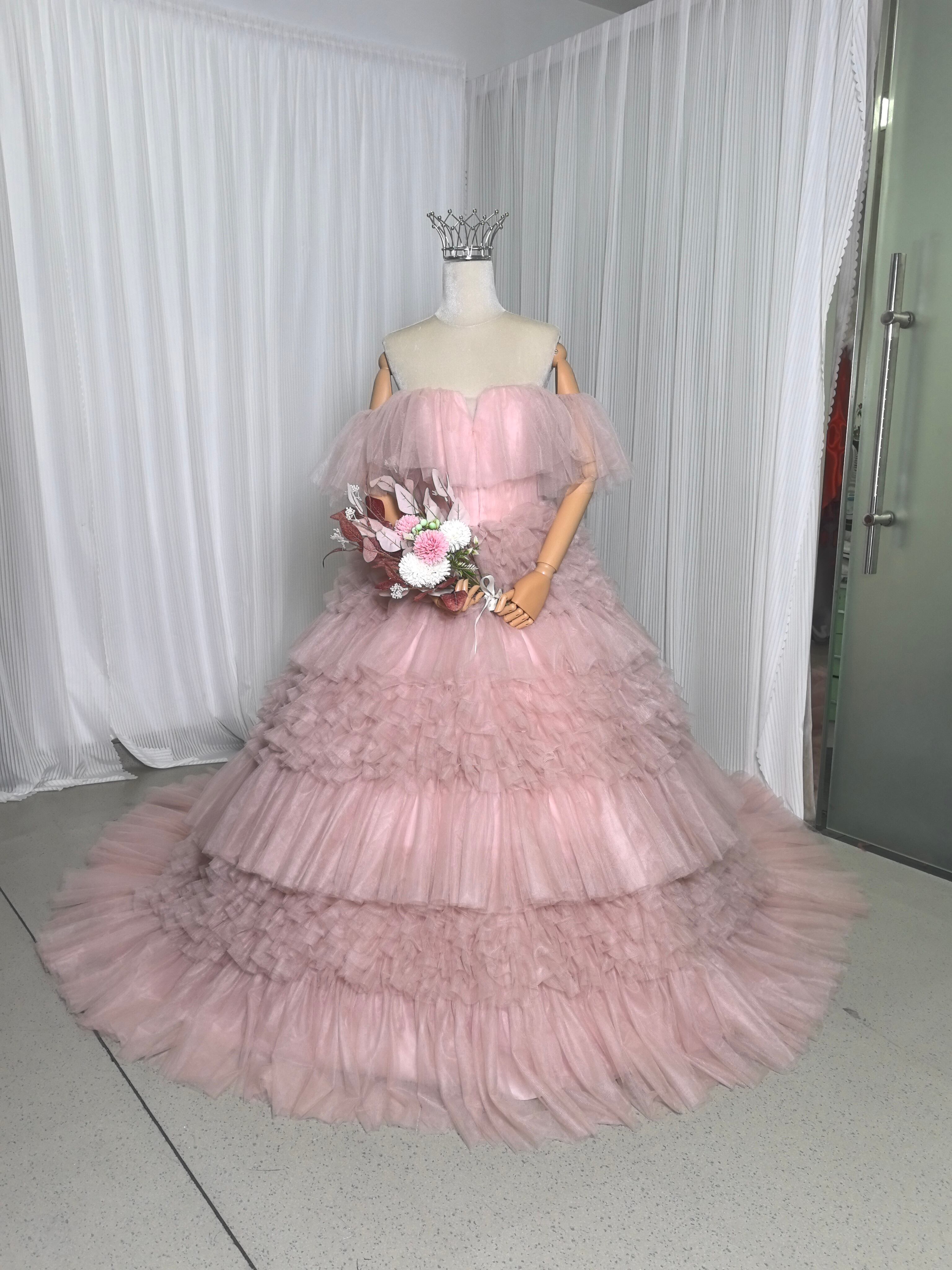 もこもこピンクカラードレス チュールドレス フリルオフショルダー お色直し ふわふわ ボリュームドレス