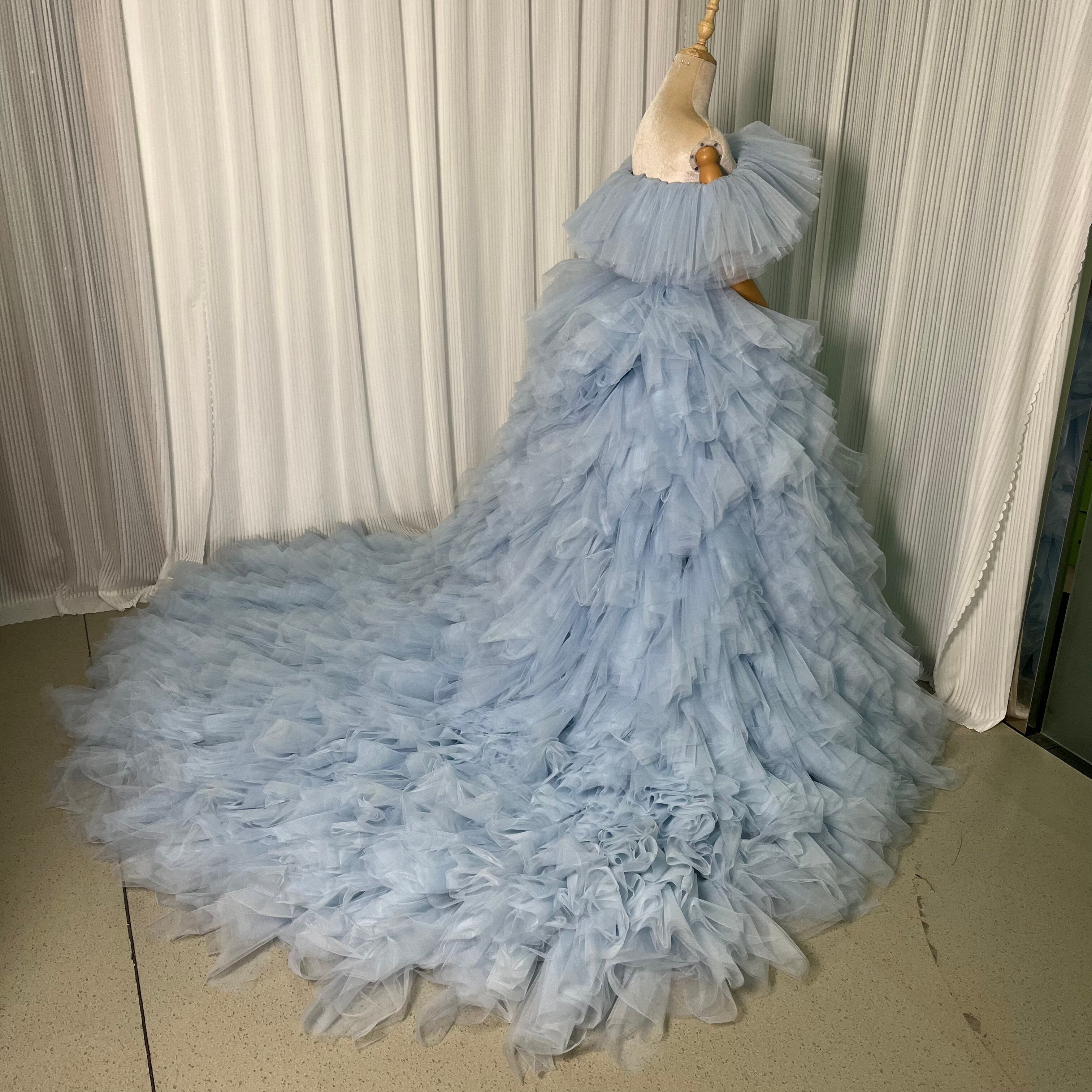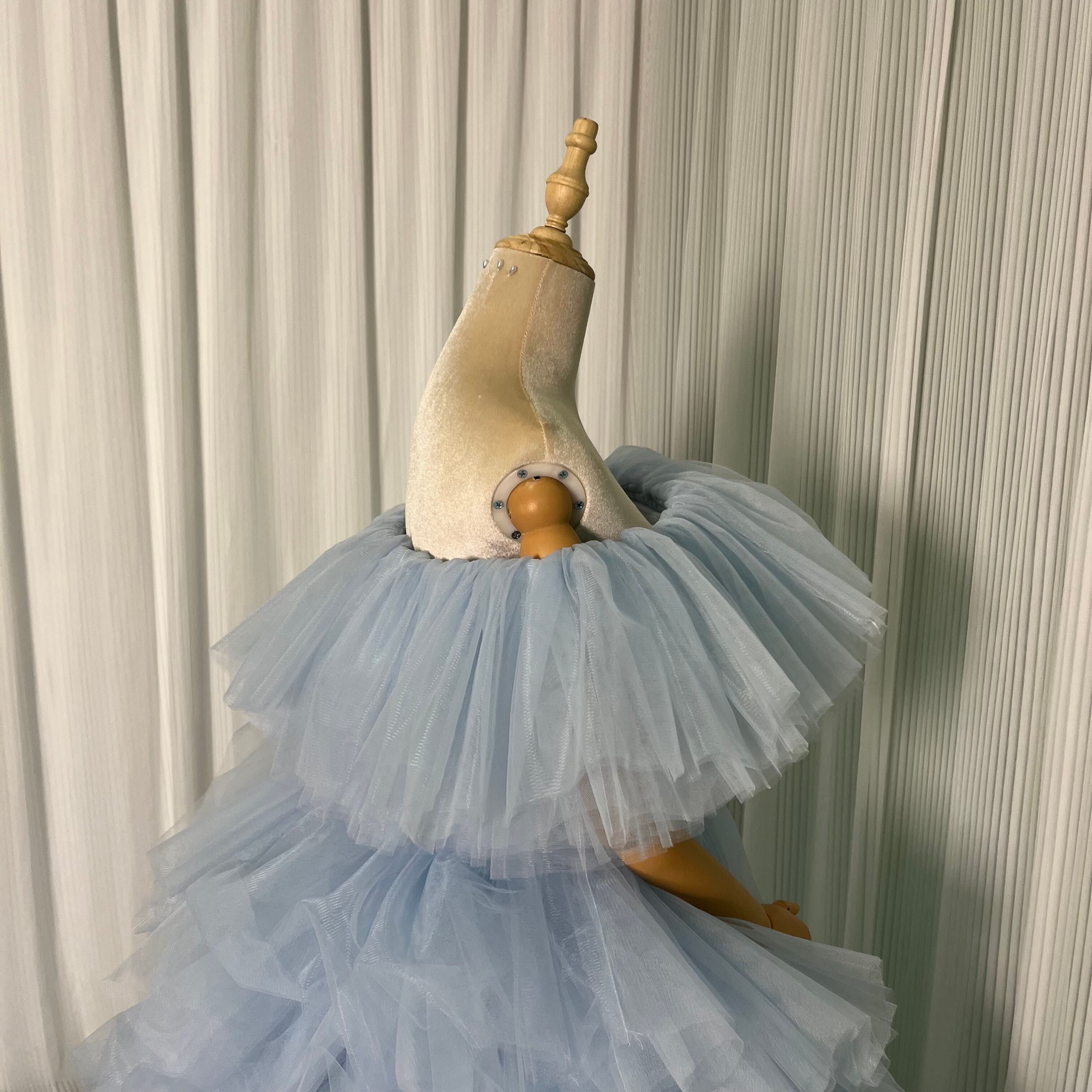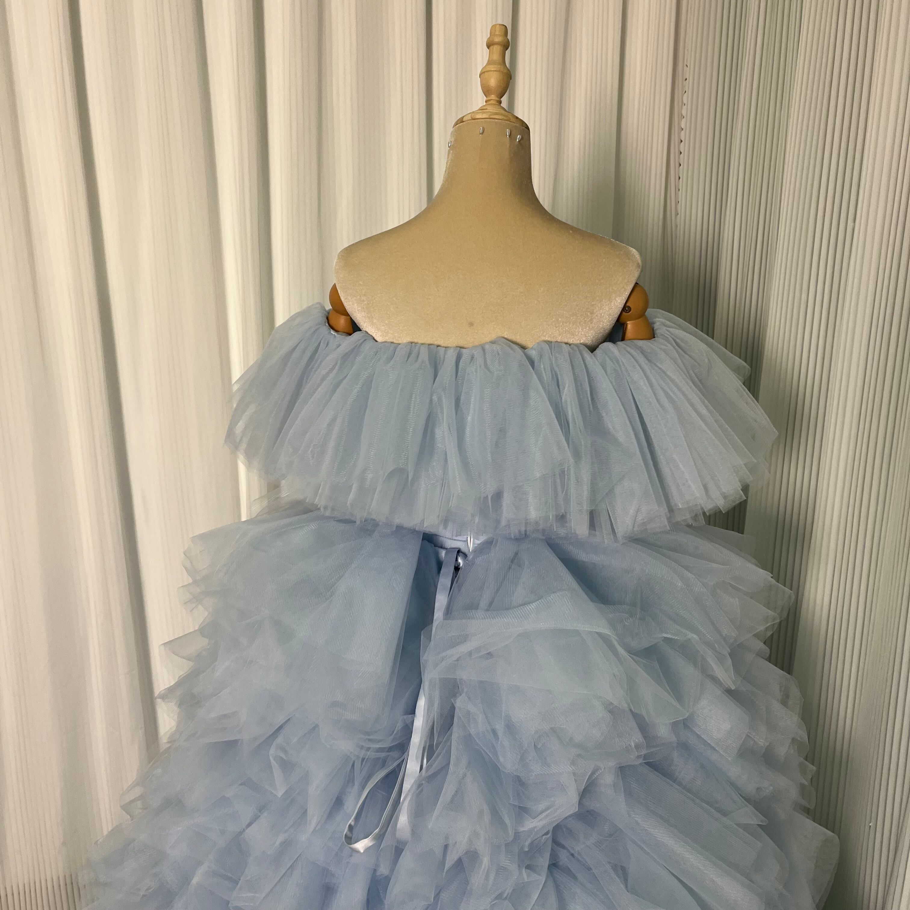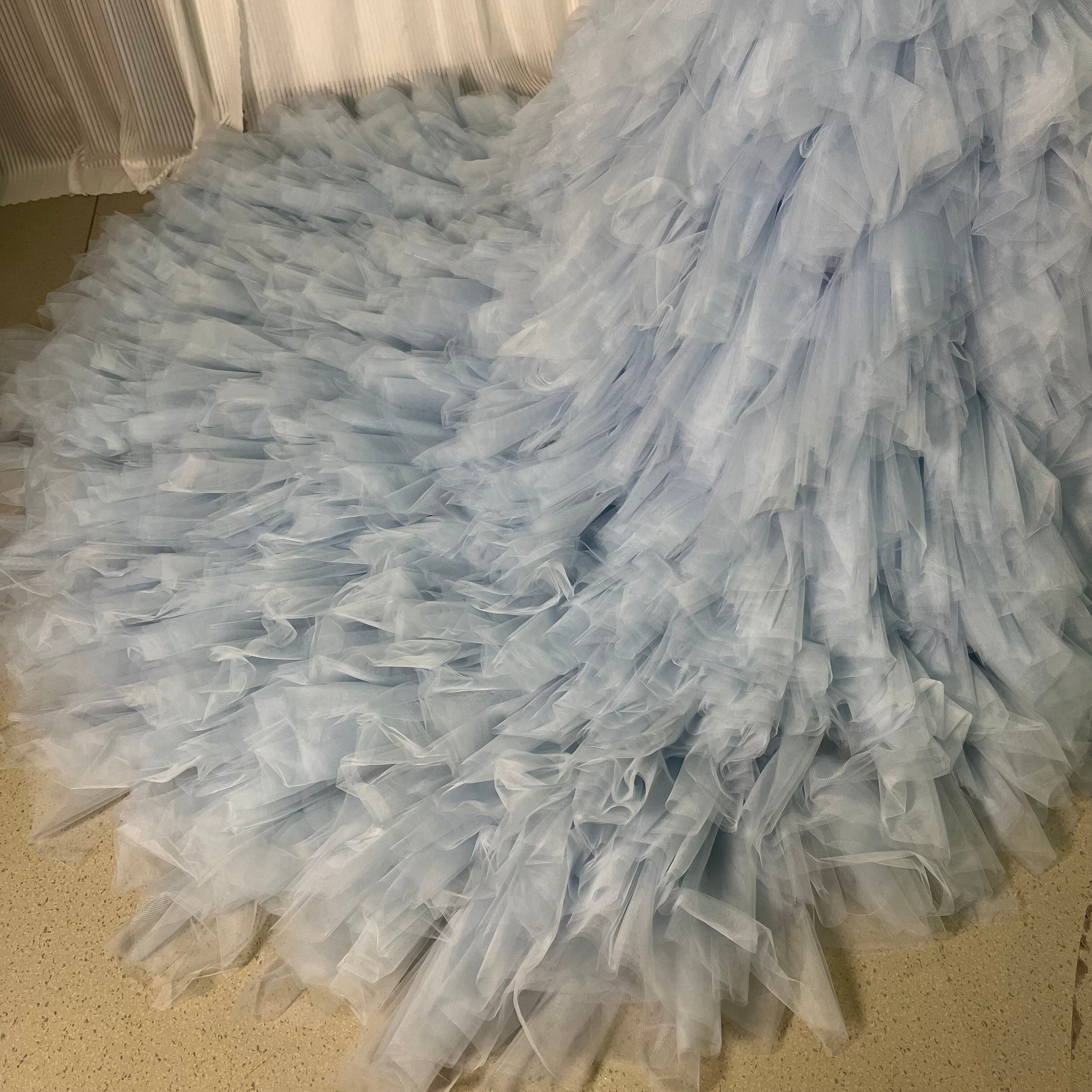 薄青 もこもこ カラードレス チュールドレス フリルオフショルダー お色直し ふわふわ ボリュームドレス