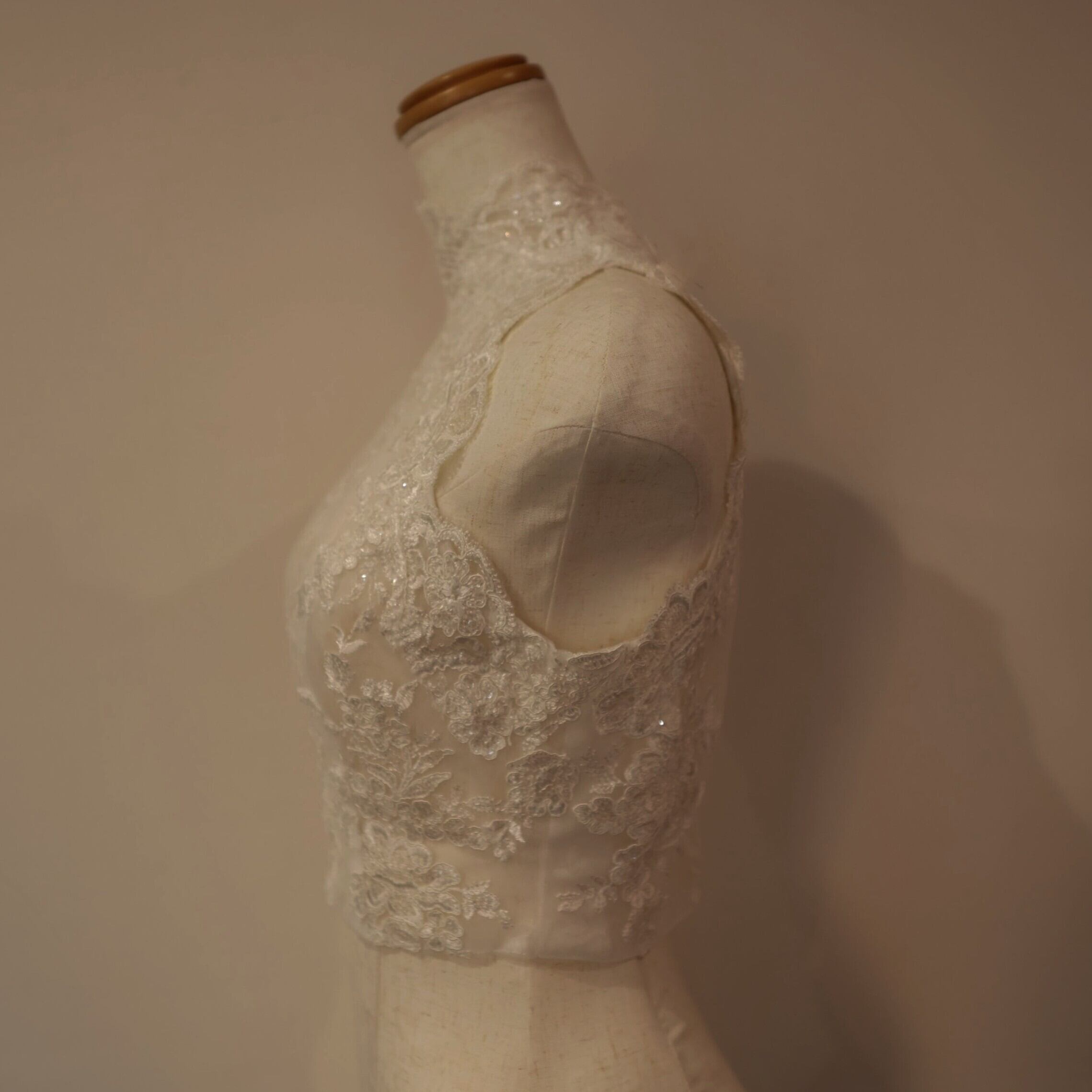 実例写真 美品!エレガント ウエディングドレス フレンチスリーブ ボレロ レース 結婚式/披露宴 くるみボタン