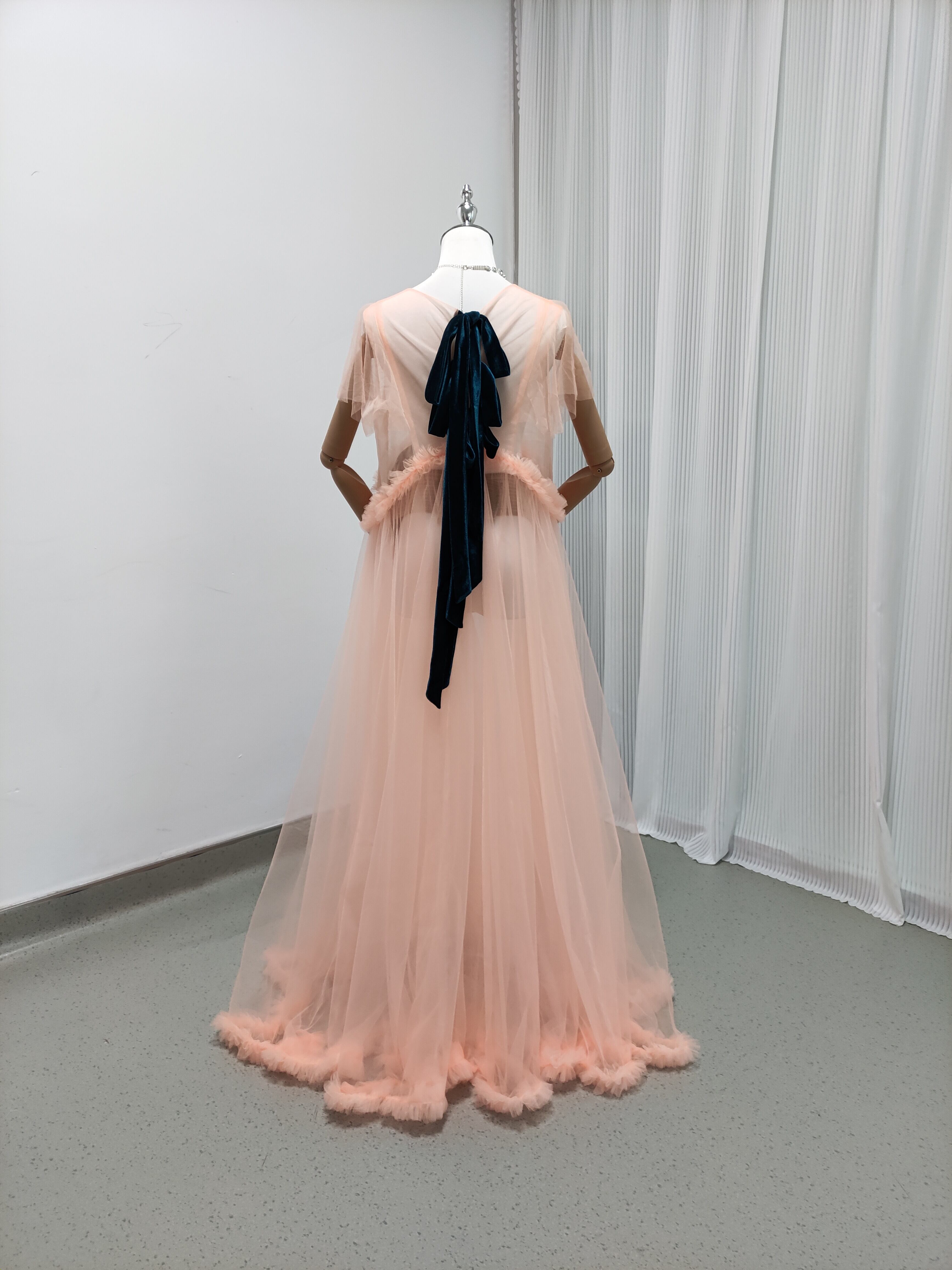 実例写真 上品!オレンジ ペールトーンのミント チュールドレス ソフトチュール カラードレスオーバースカート