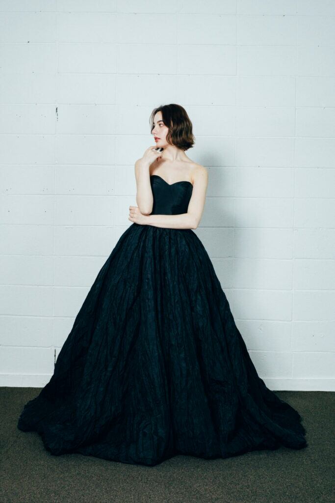 美品!ブラック/黒 ベアトップ カラードレス タック ロングトレーン パーティードレス ナイトドレス ミディアムドレス 前撮り/コンサート/二次会 | David1021k Dress(ダヴィドレス)