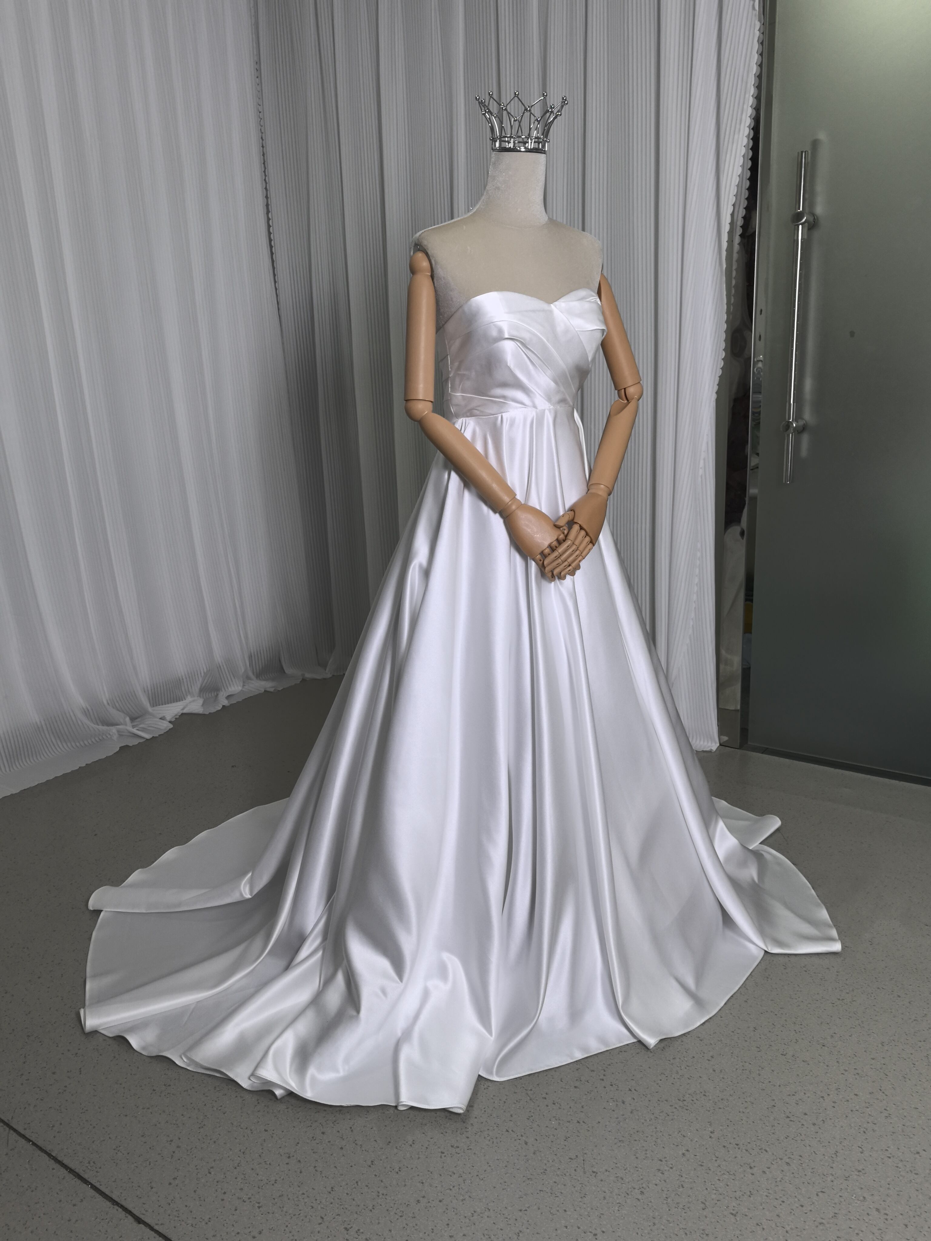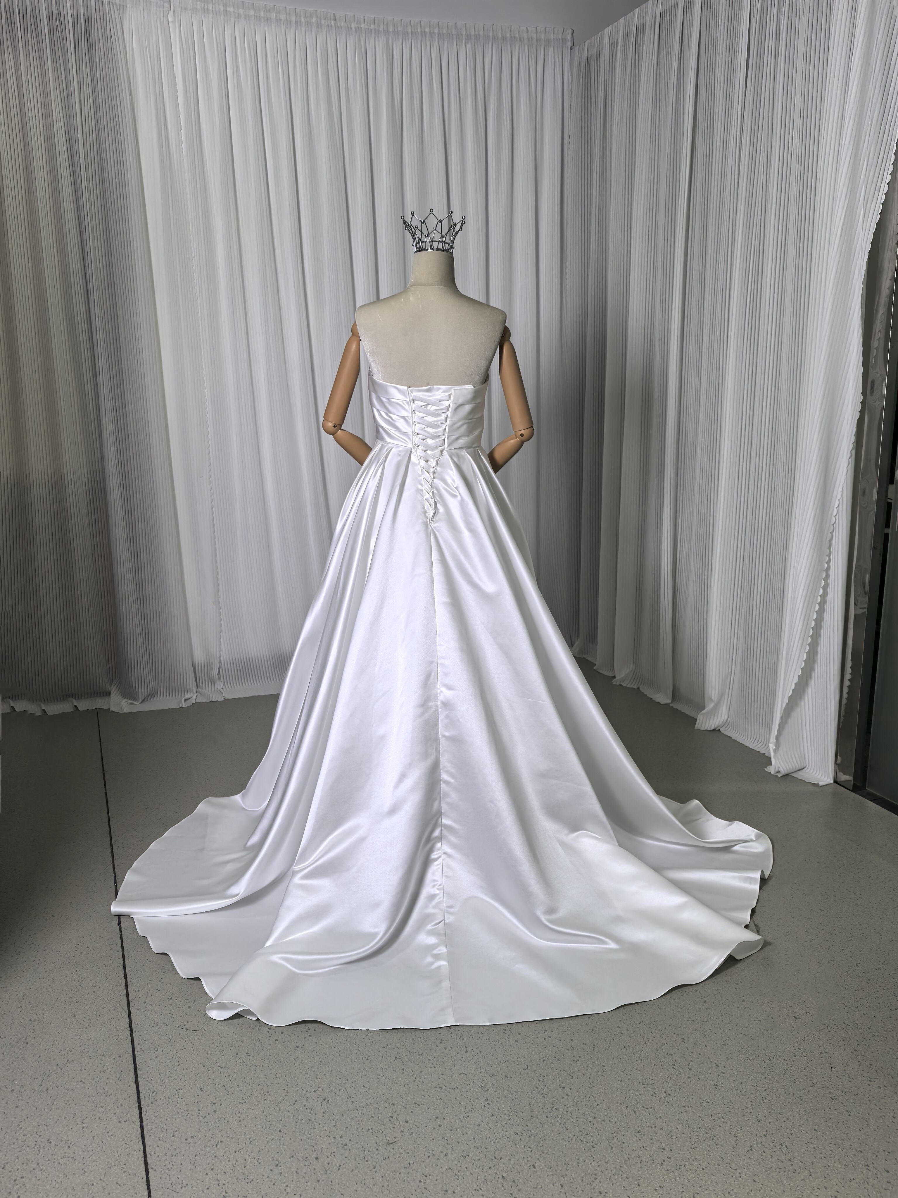 高品質!上品レース ベアトップ ウエディングドレス オーダーメイド 花嫁/挙式/前撮り/結婚式