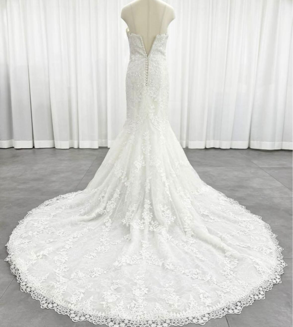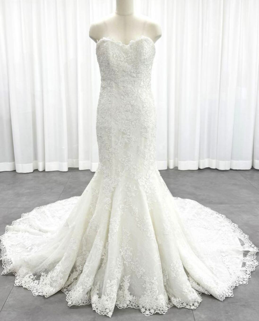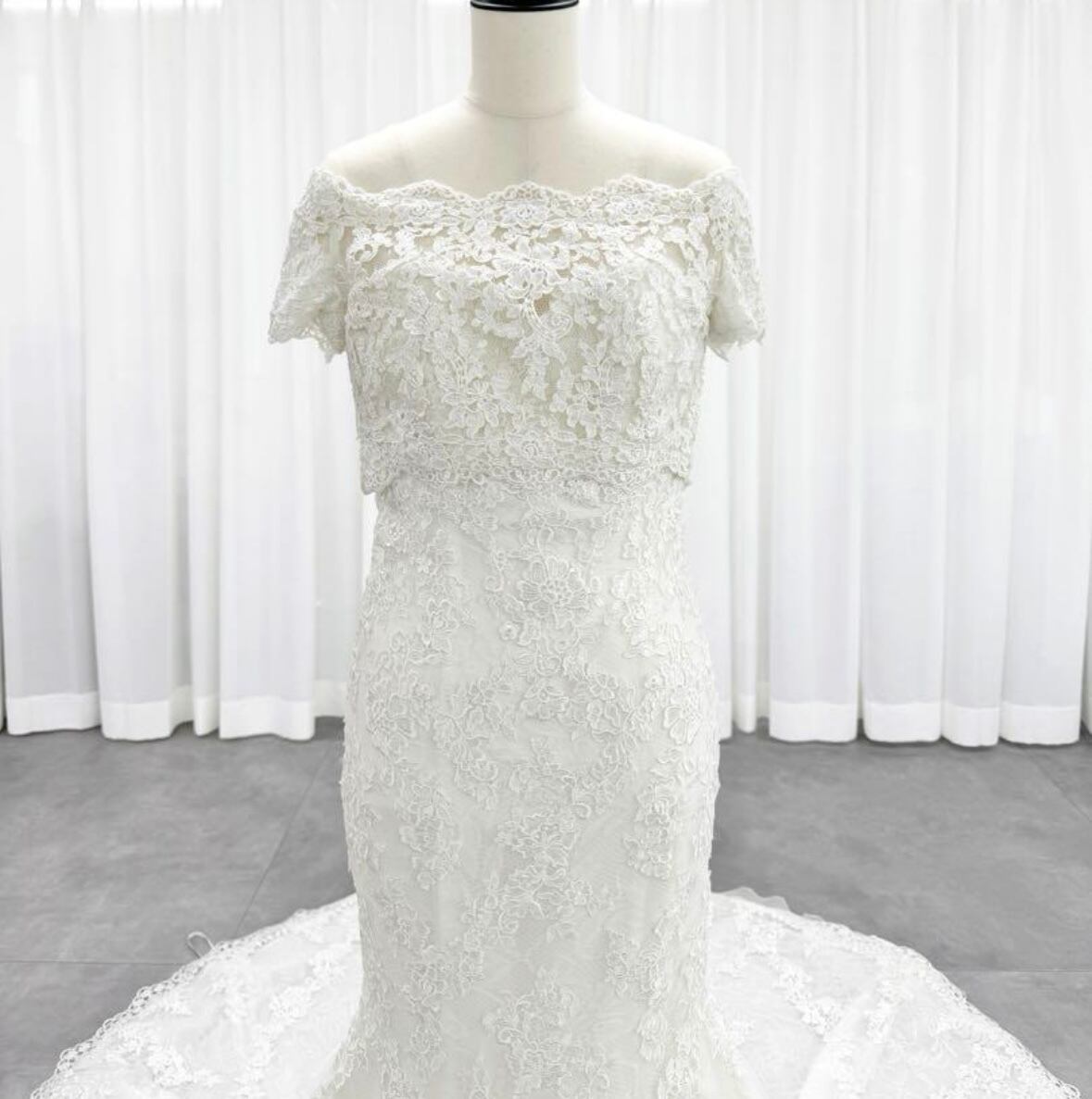美品!オーダーメイド!韓国風ドレス 繊細総レースドレス ウエディングドレス マーメイドドレス 上品レースボレロ 花モチーフ刺繡 オフショルダー ロングトレーン 前撮り/教会式
