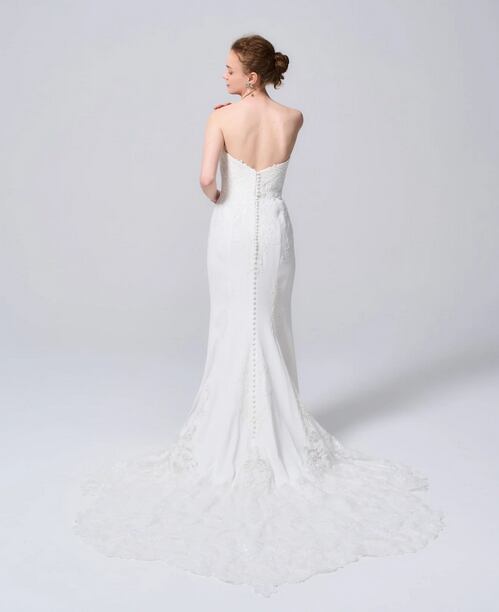 美品!オーダーメイド!繊細レースドレス ウエディングドレス ソフトマーメイドドレス 花モチーフ刺繡 ロングトレーン 前撮り/教会式