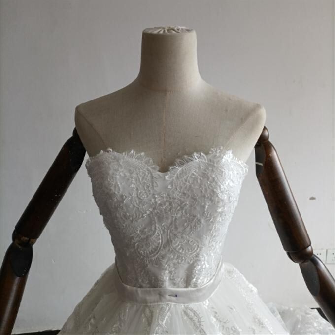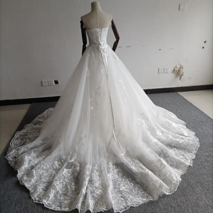 実例写真 美品!ウ3D立体レース刺繍 エディングドレス パーティードレス ロングトレーン 前撮り/教会式