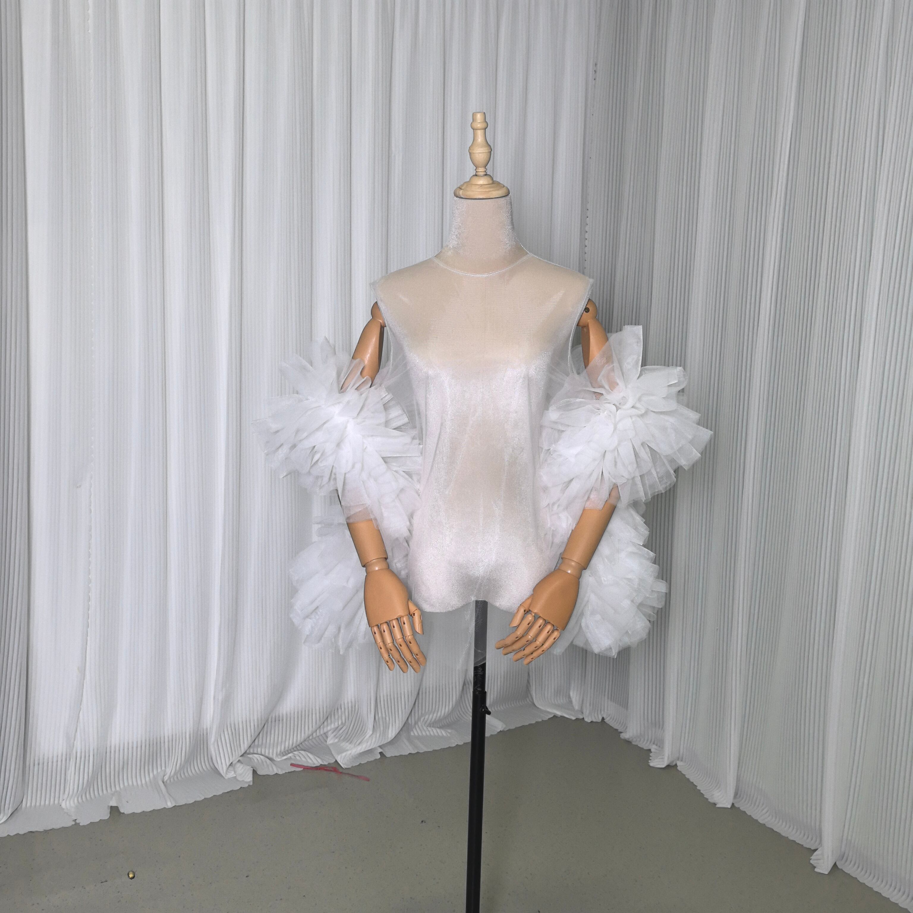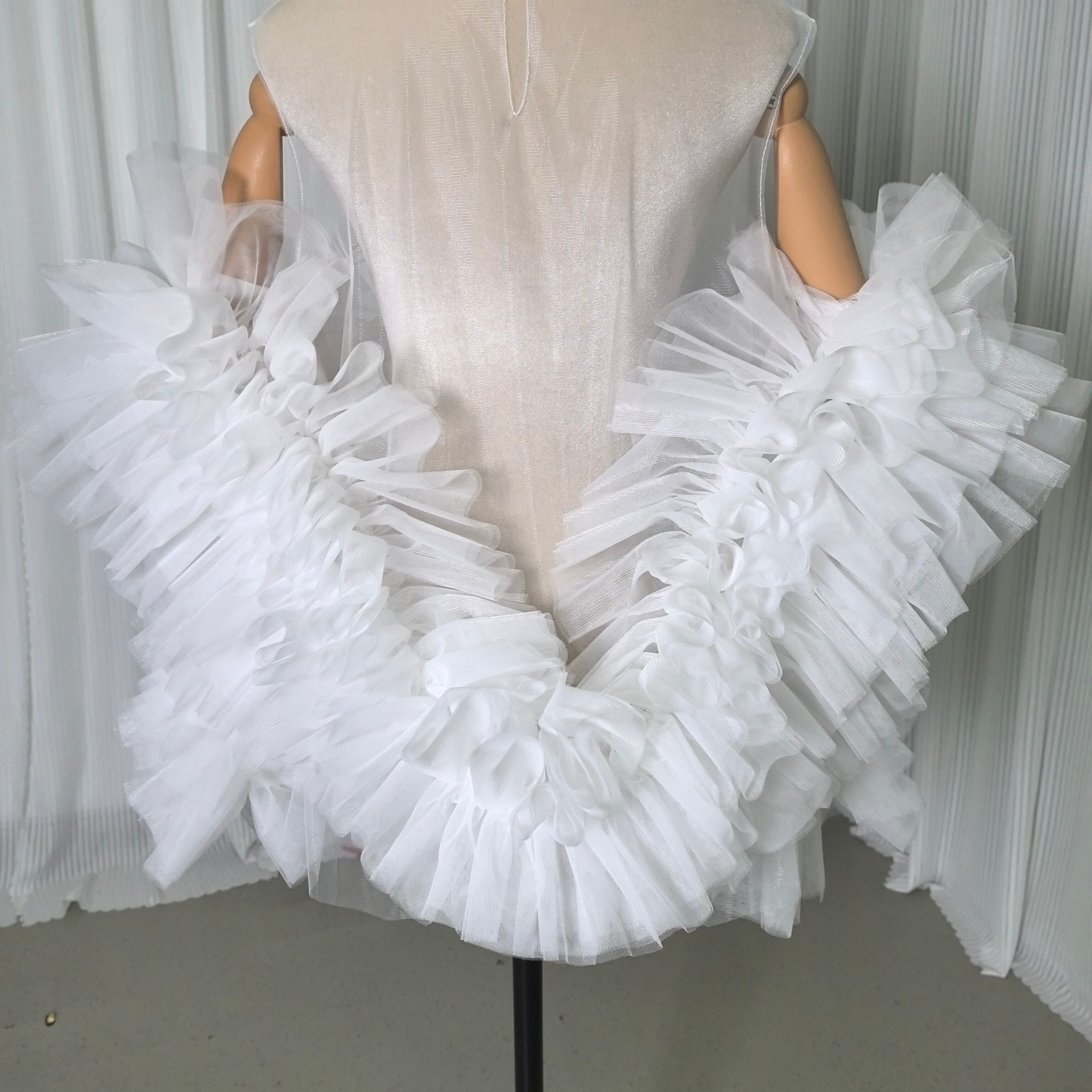 送料無料! オフホワイト 抜群のおしゃれ見えカーディガン(ボレロ) ソフトチュール ラッフルフリルトップス 前撮り
