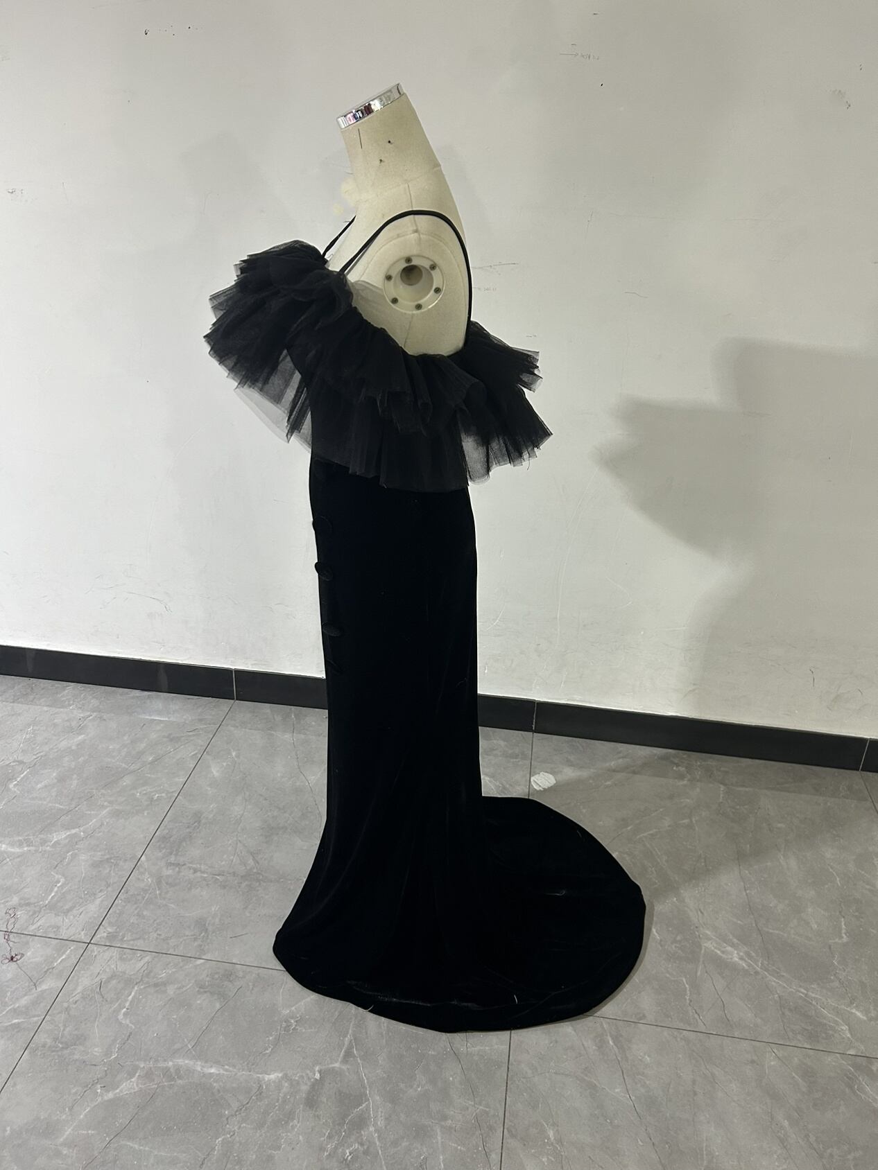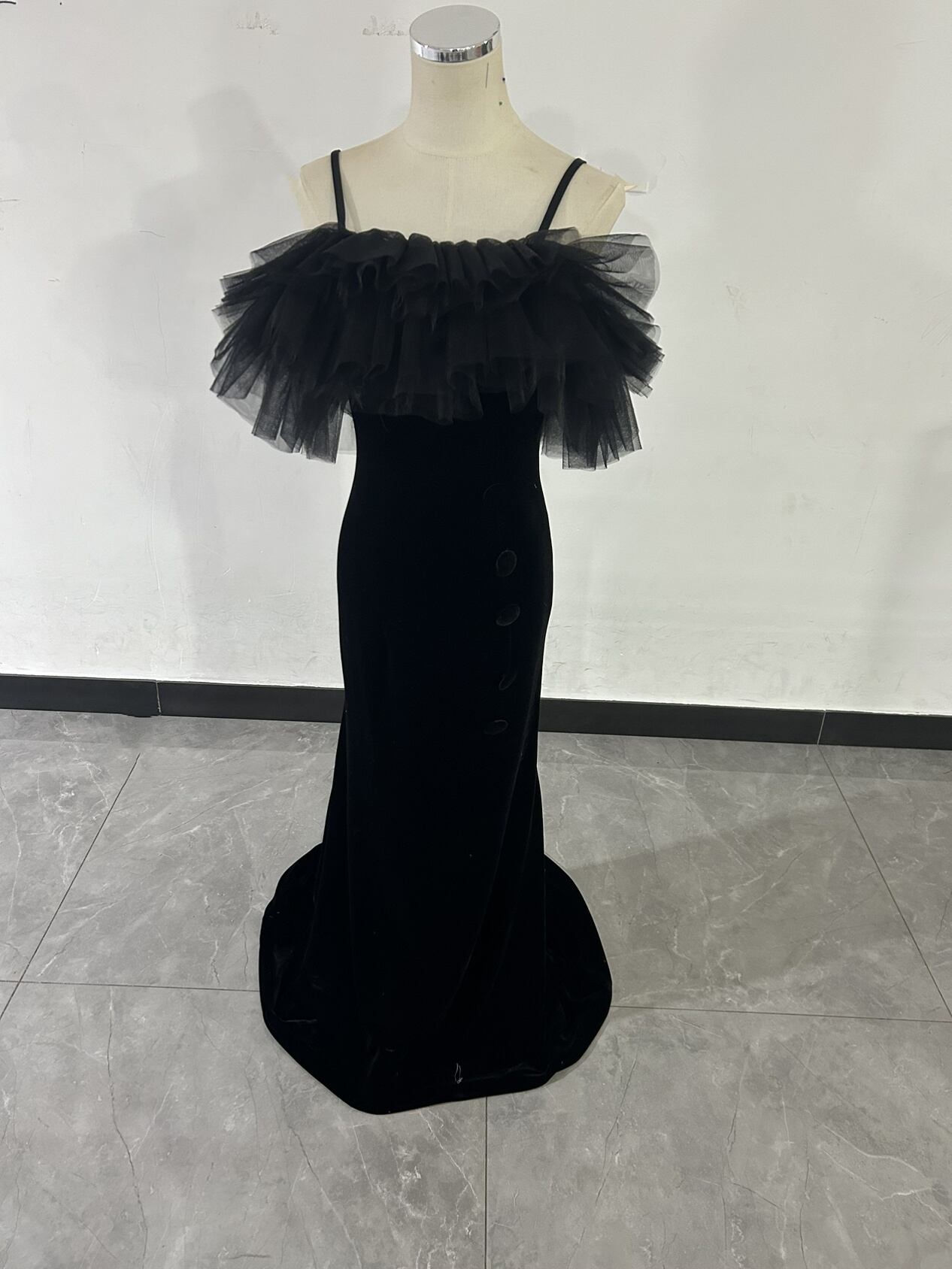 高品質!パーティードレス 黒 オフショル ミディアムドレス マーメイドライン エレガン ト クラシカル シアーな美しさ