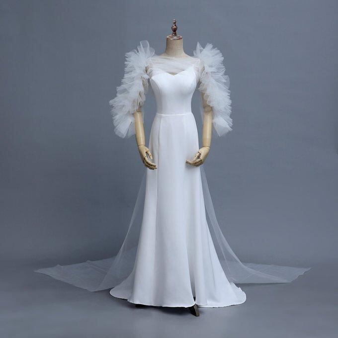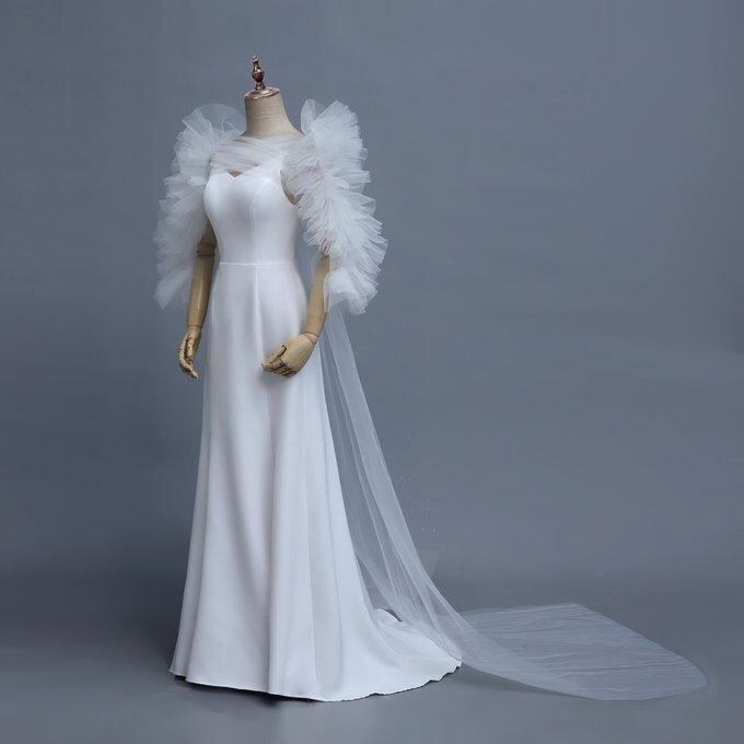 実例写真 抜群のおしゃれ見え パーティードレス 2WAYウエディングドレス トップス トレーン ポンチョ+ソフトチュール 演奏会