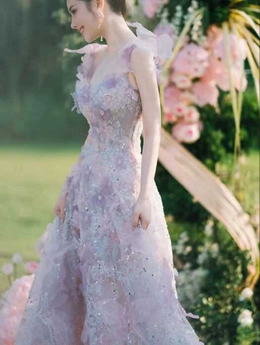 華やか!鮮やかな3Dフラワードレス スパコール カラードレス ダンスドレス パーティードレス 誕生日プレゼント 司会者 ピアノ演奏会/セレモニー
