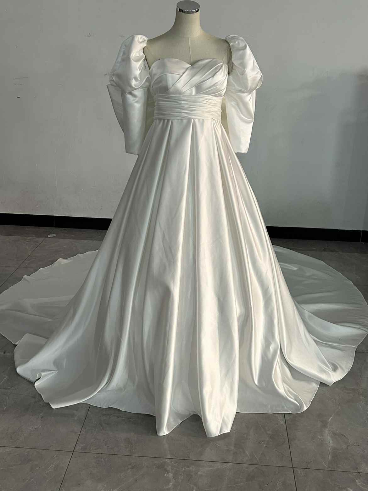 人気上昇! オフホワイト ウエディングドレス ふっくら柔らかなバックリボン 取り外し袖花嫁 豪華 結婚式/前撮り
