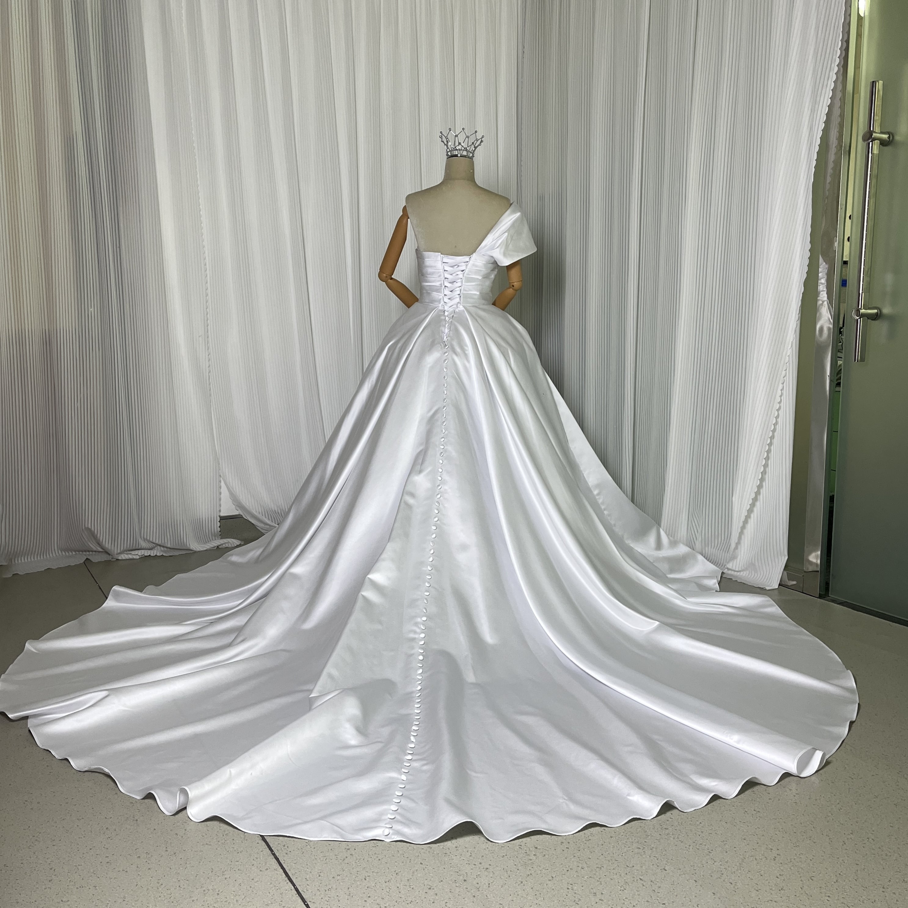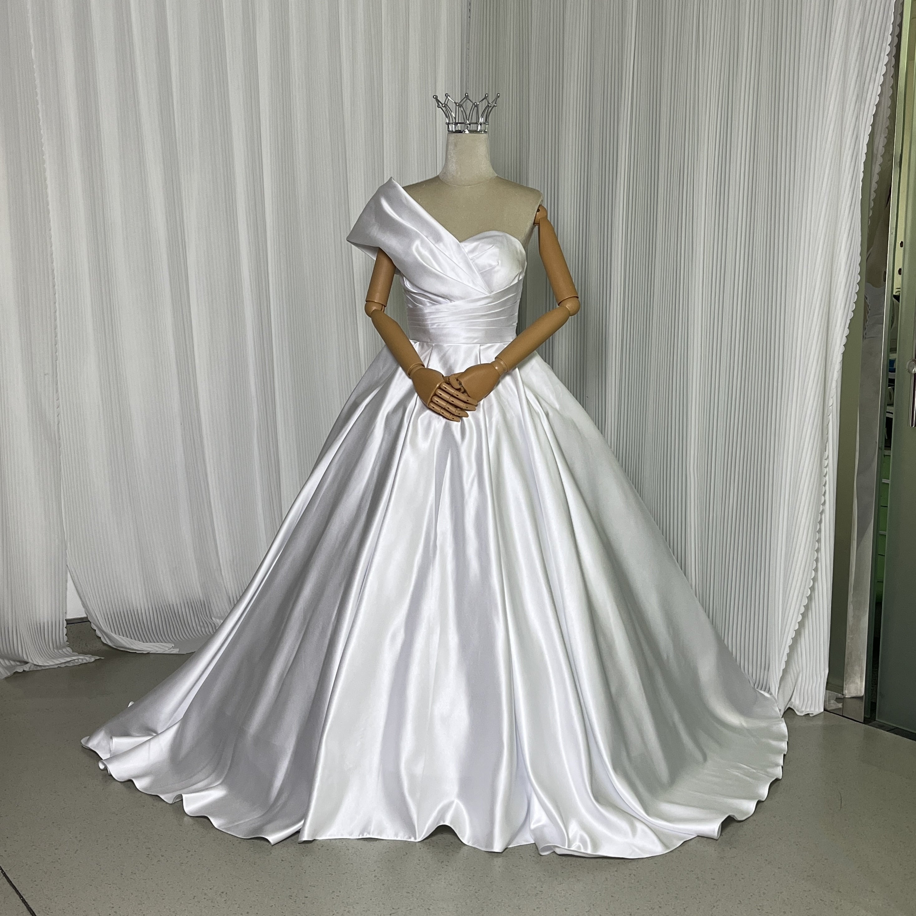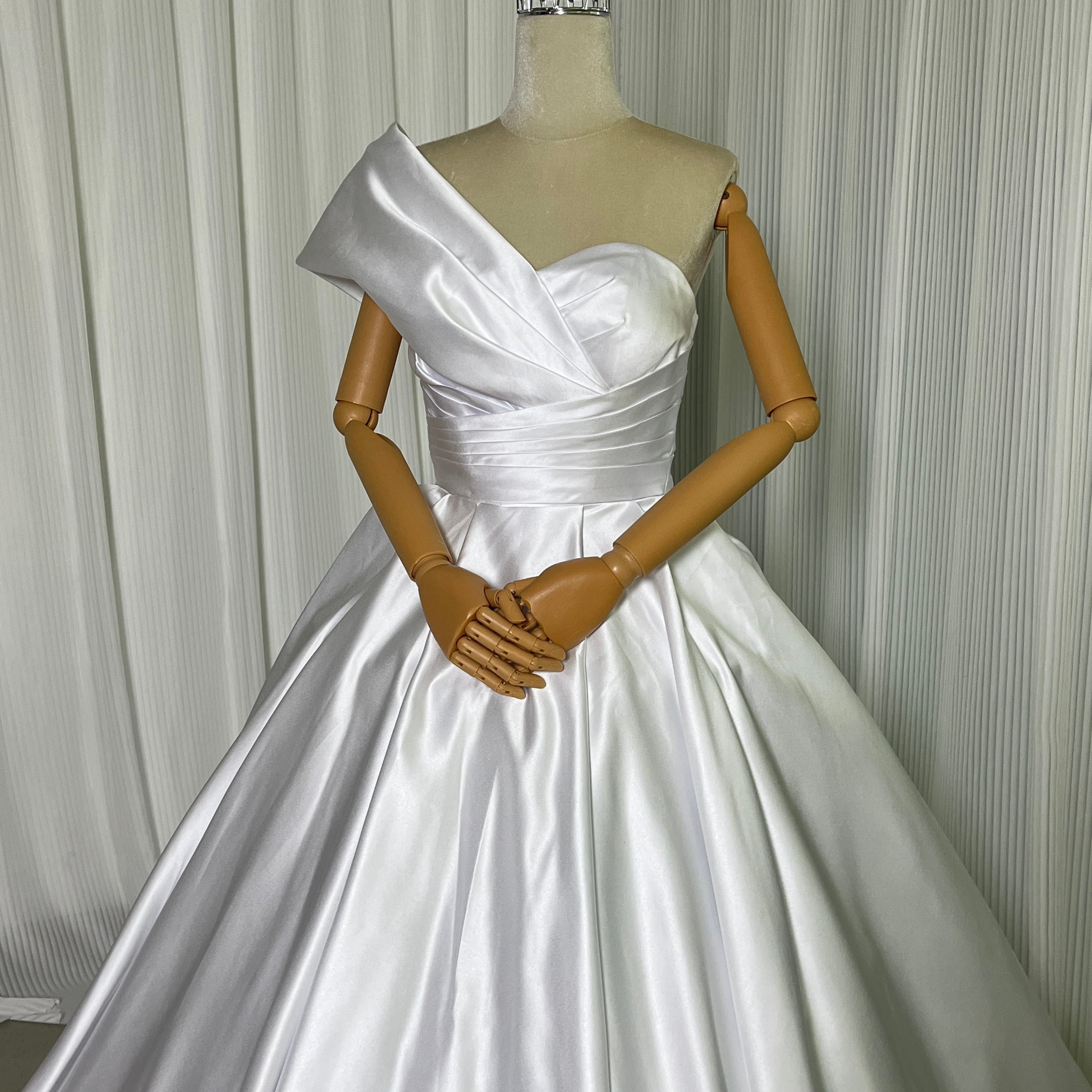 ワンショルダー ウエディングドレス 華やかなトレーン パーティードレス 優美なデコルテライン バックフリル 前撮り/二次会