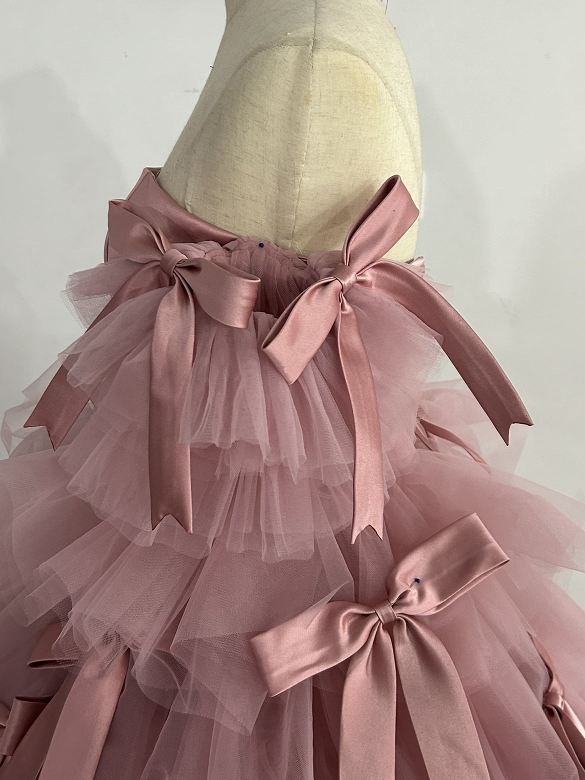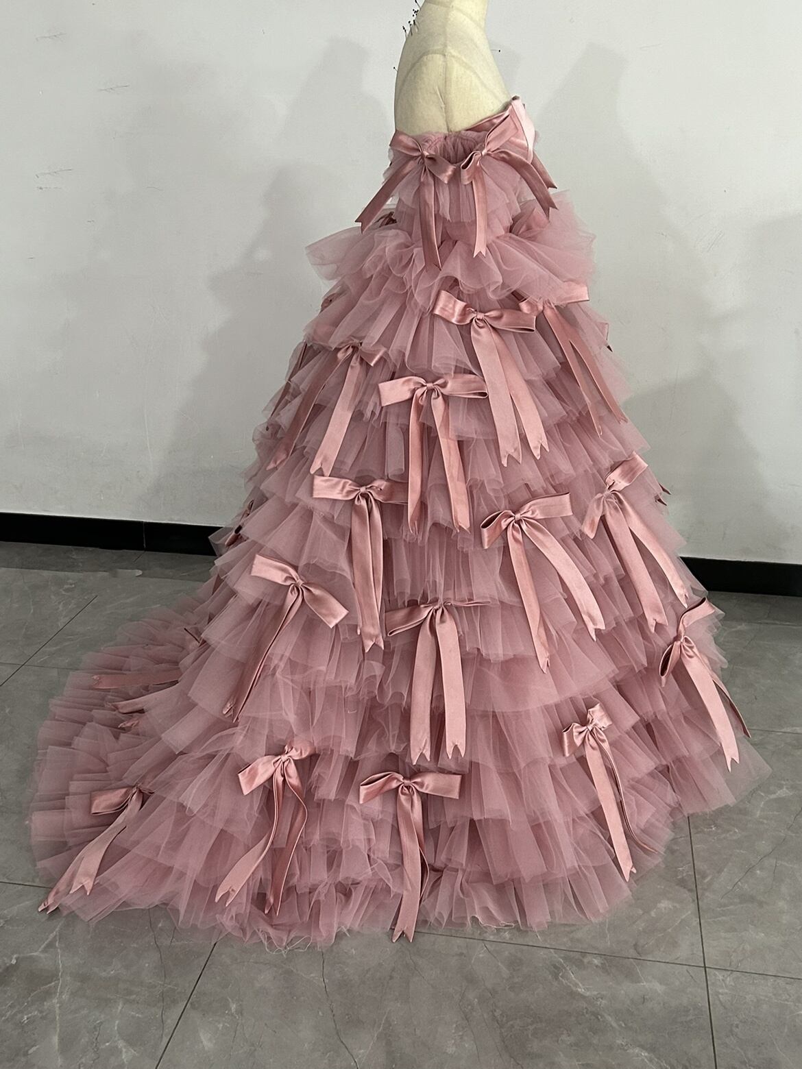 もこもこピンクカラードレス チュールドレス フリルオフショルダー リボン ふわふわ ボリュームドレス
