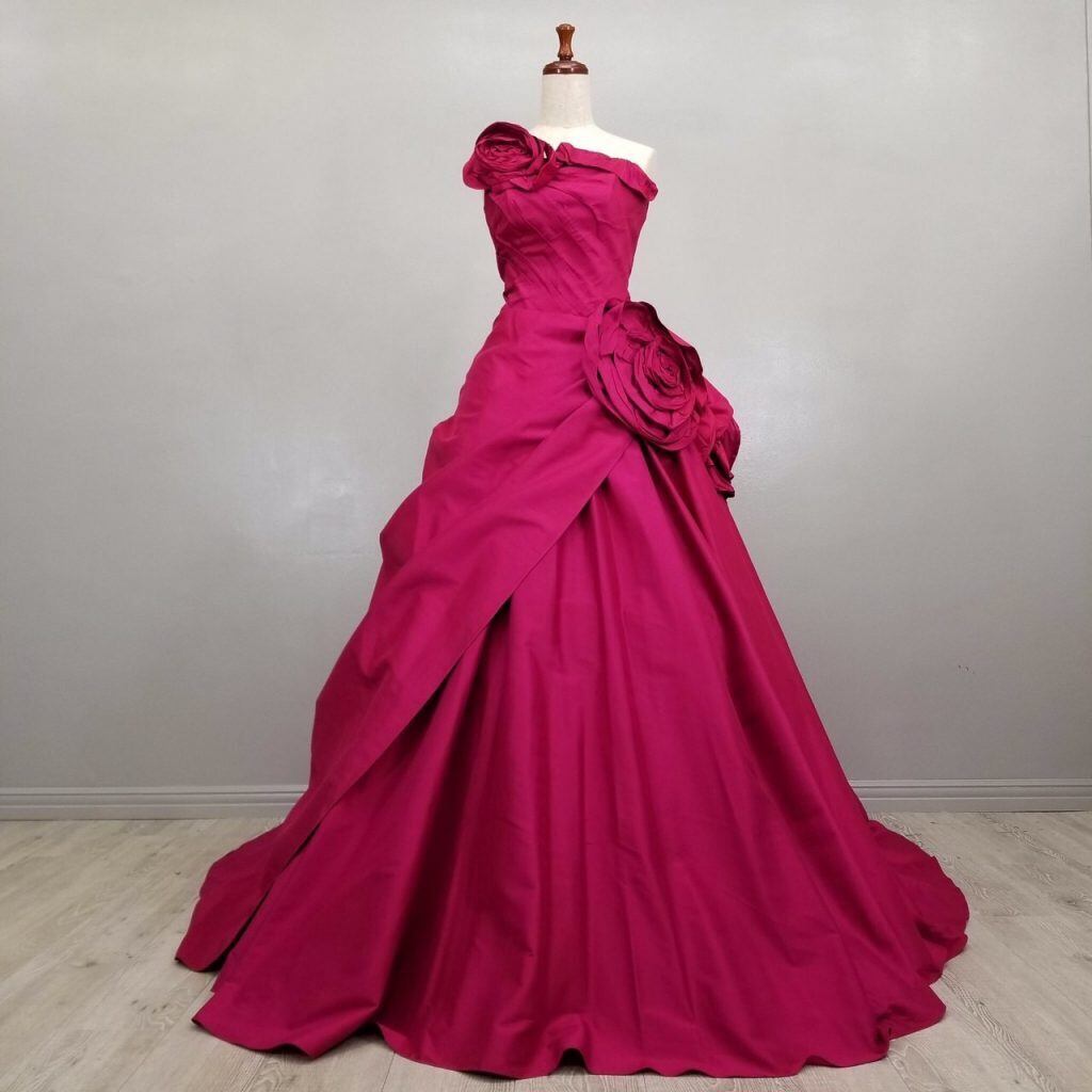 豪華!ショッキングピンク ナイトドレス カラードレス バラリボン スレンダーライン パーティードレス イブニングドレス Aラインドレス 花嫁/挙式/前撮り | David1021k Dress(ダヴィドレス)