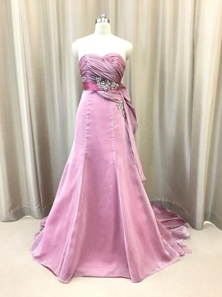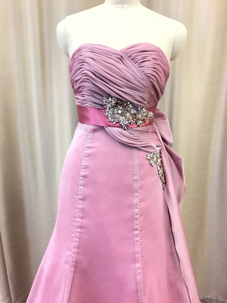 美品!ピンク紫 シクラメンピンク フリルトレーン カラードレス マーメードドレス パーティードレス イブニングドレス 花嫁/挙式/前撮り
