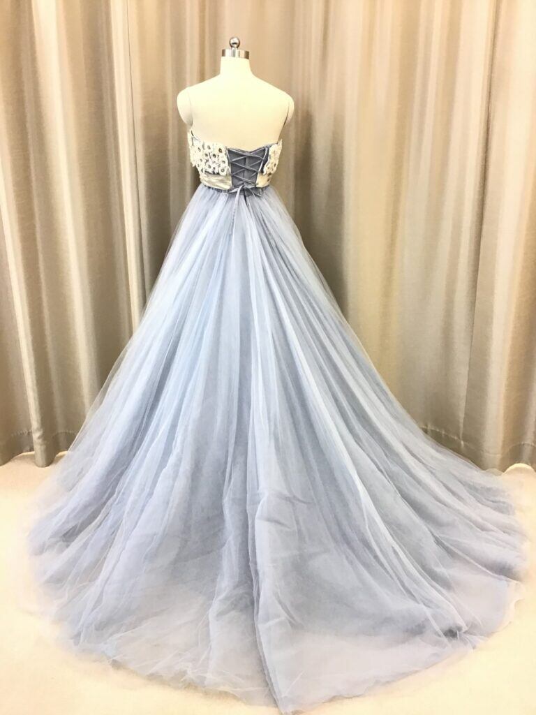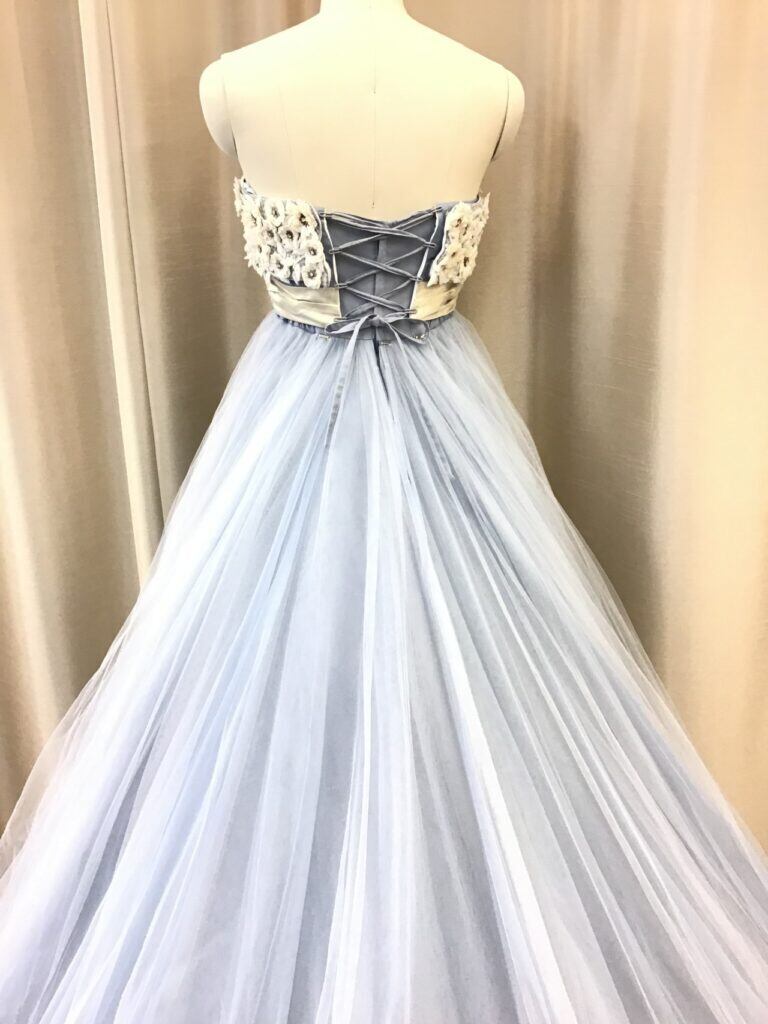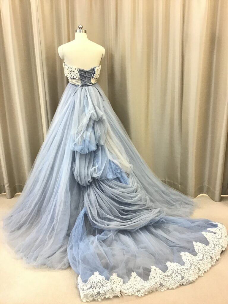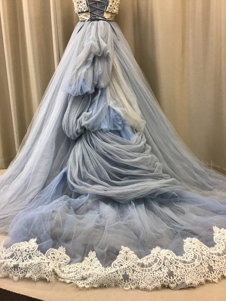 美品!ブルー 3D花リボン フリルトレーン カラードレス マーメードドレス パーティードレス チュールドレス 花嫁/挙式/前撮り