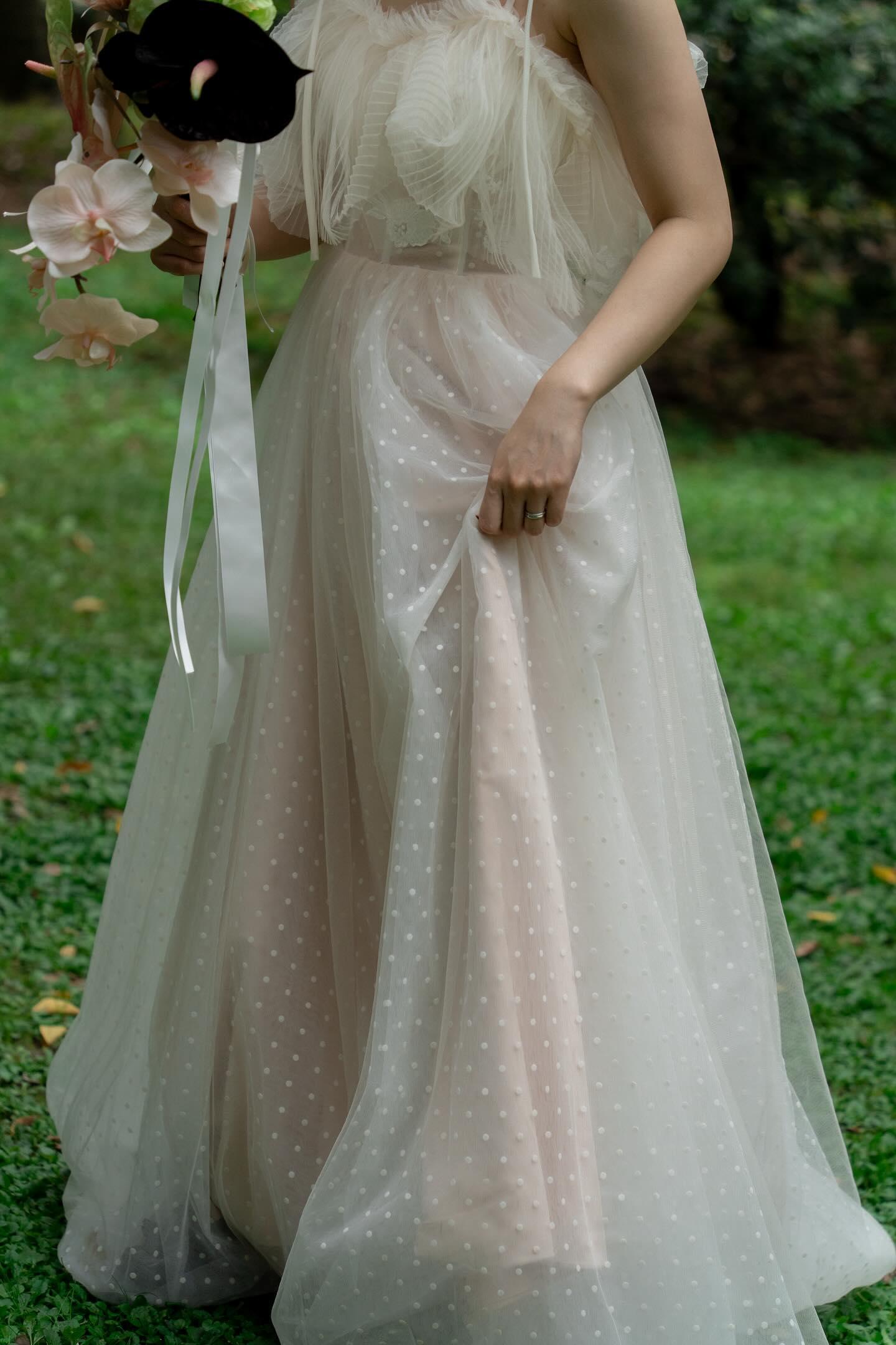 実例写真 ウエディングドレス ソフトチュール パーティードレス 優美なデコルテライン バックフリル 前撮り/二次会