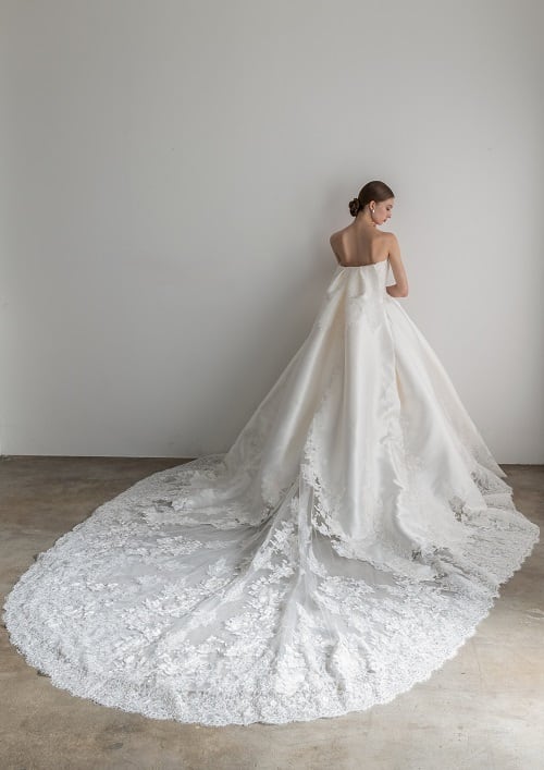 豪華!ロングトレーン クラシックなウエディングドレス 総レーストレーン マント 美しいバックスタイル 前撮り