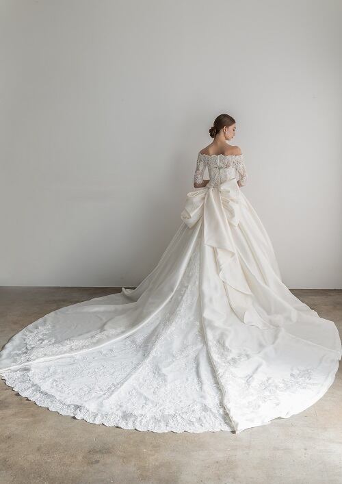豪華!2WAYウエディングドレス 総レーストレーン フリル オフショルダー 美しいバックスタイル ガーデンウェディング 前撮り