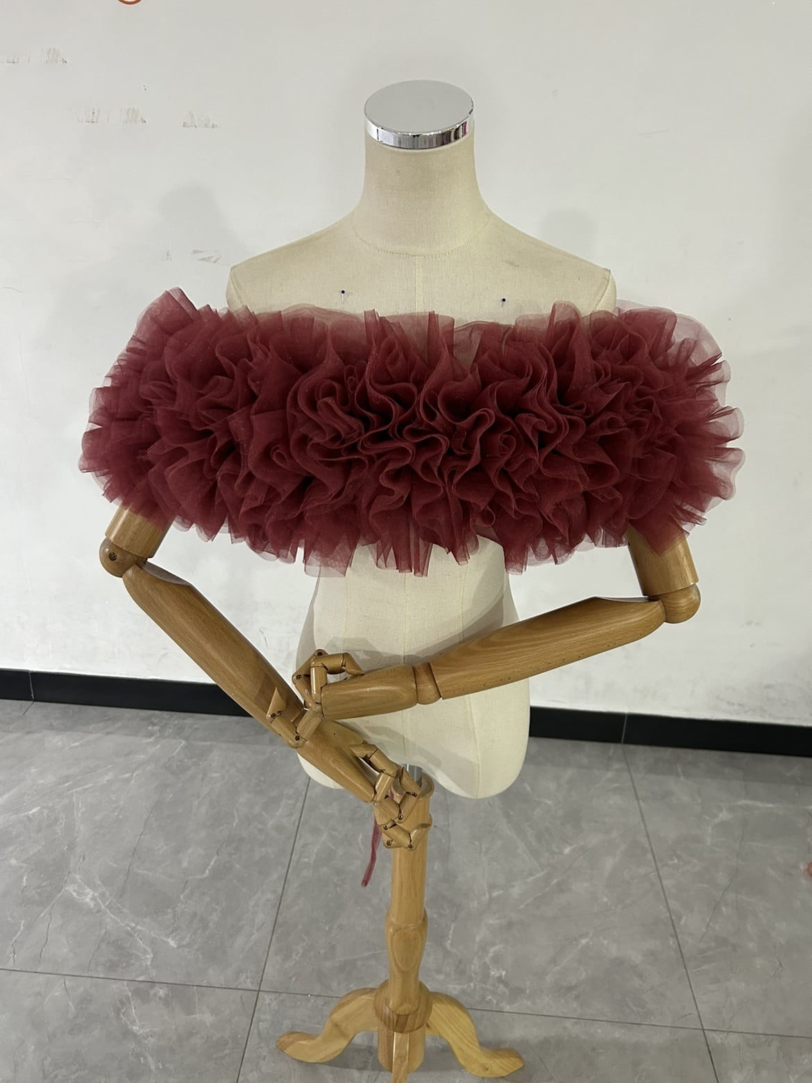 ポンチョ ソフトチュール ラッフルフリル 取り外しオフショルダー お色直し ふわふわロールカラー カラードレ