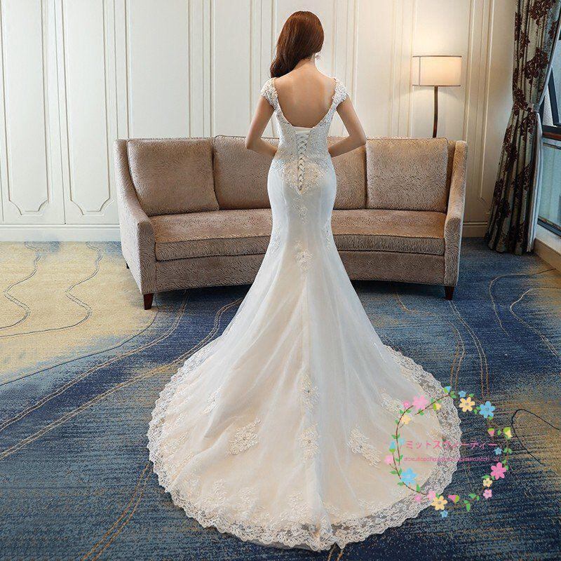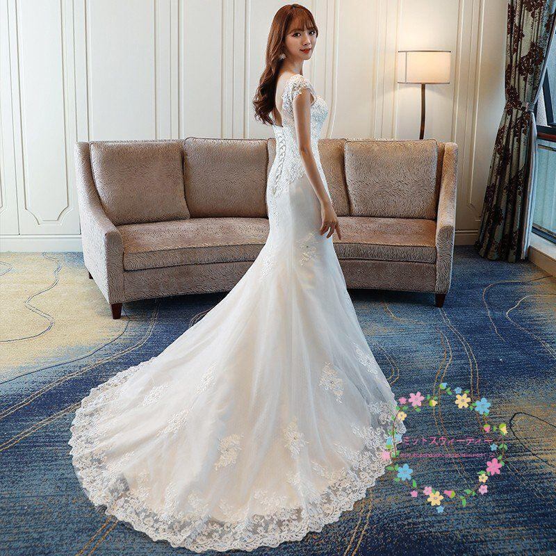 豪華! 繊細レース刺繡 ウエディングドレス マーメイドライン 前撮り/花嫁/結婚式/披露宴/