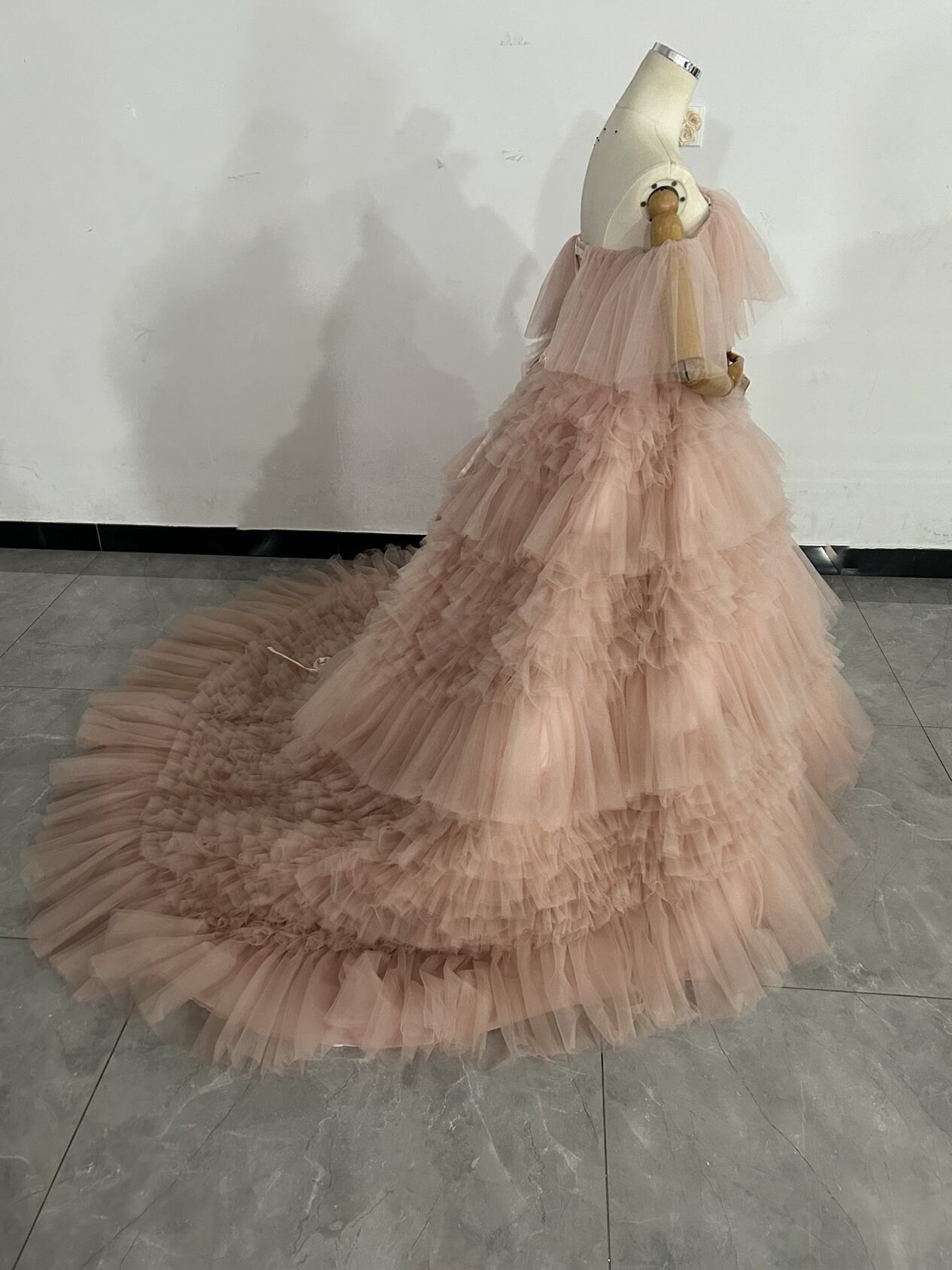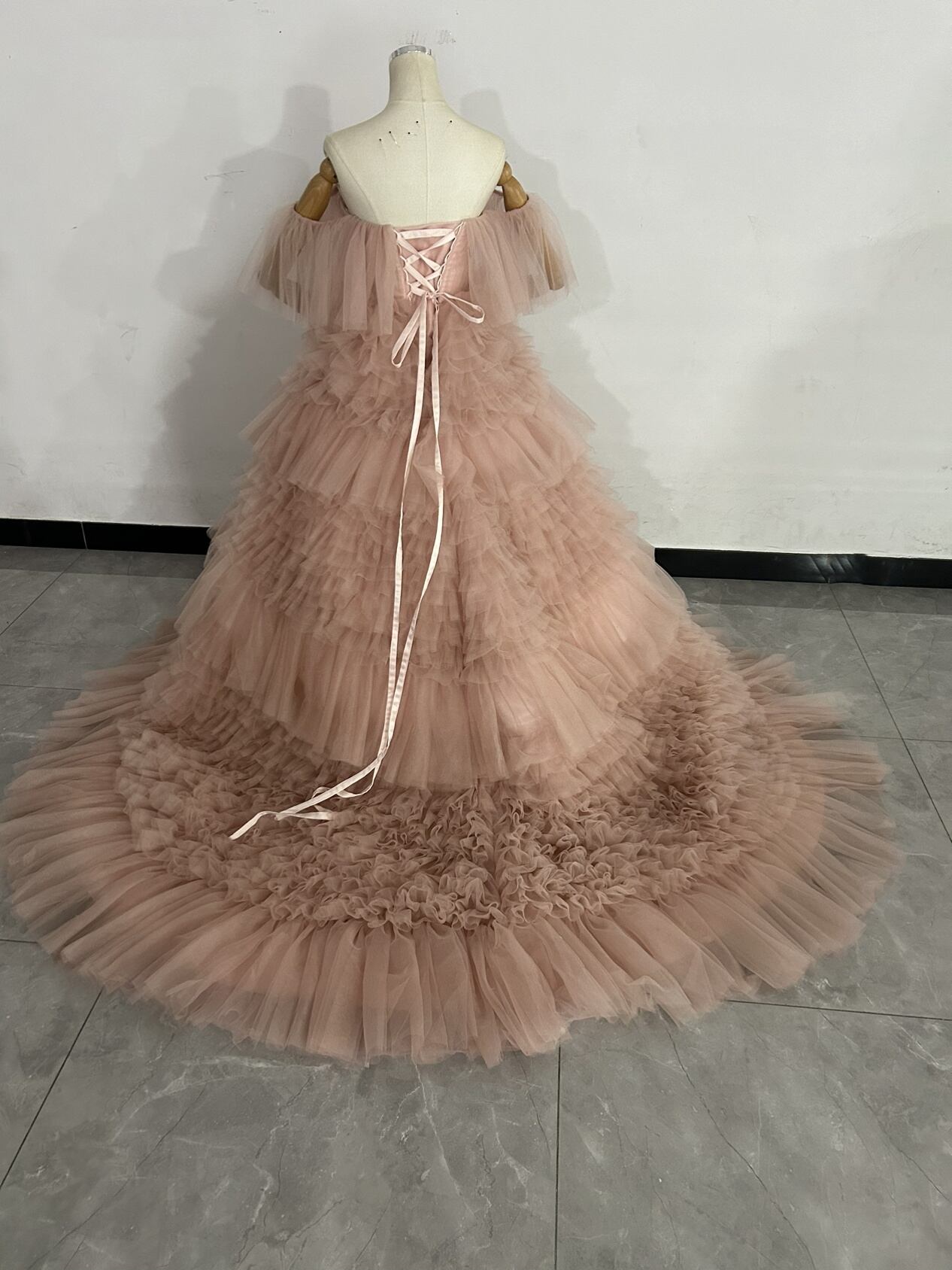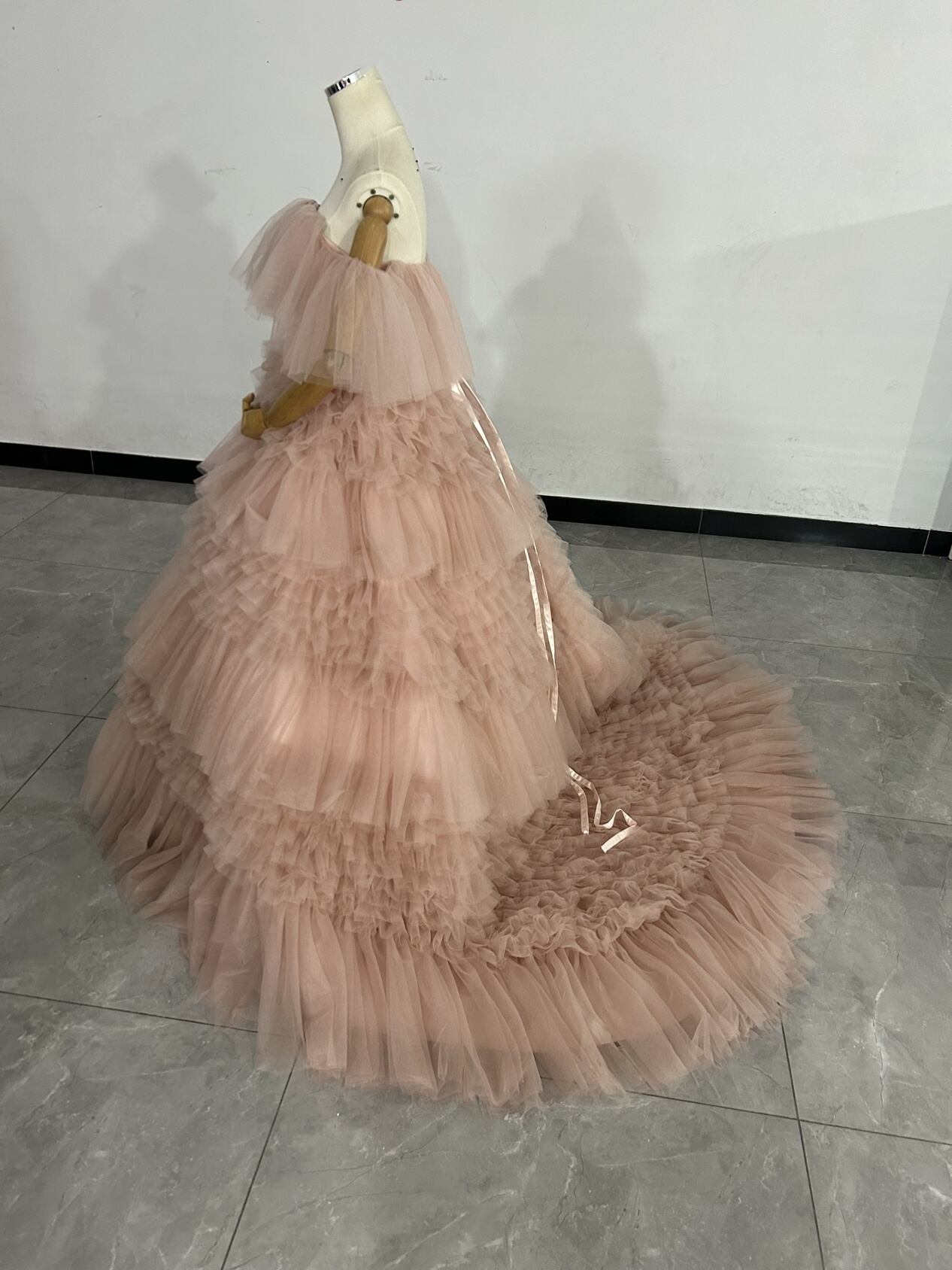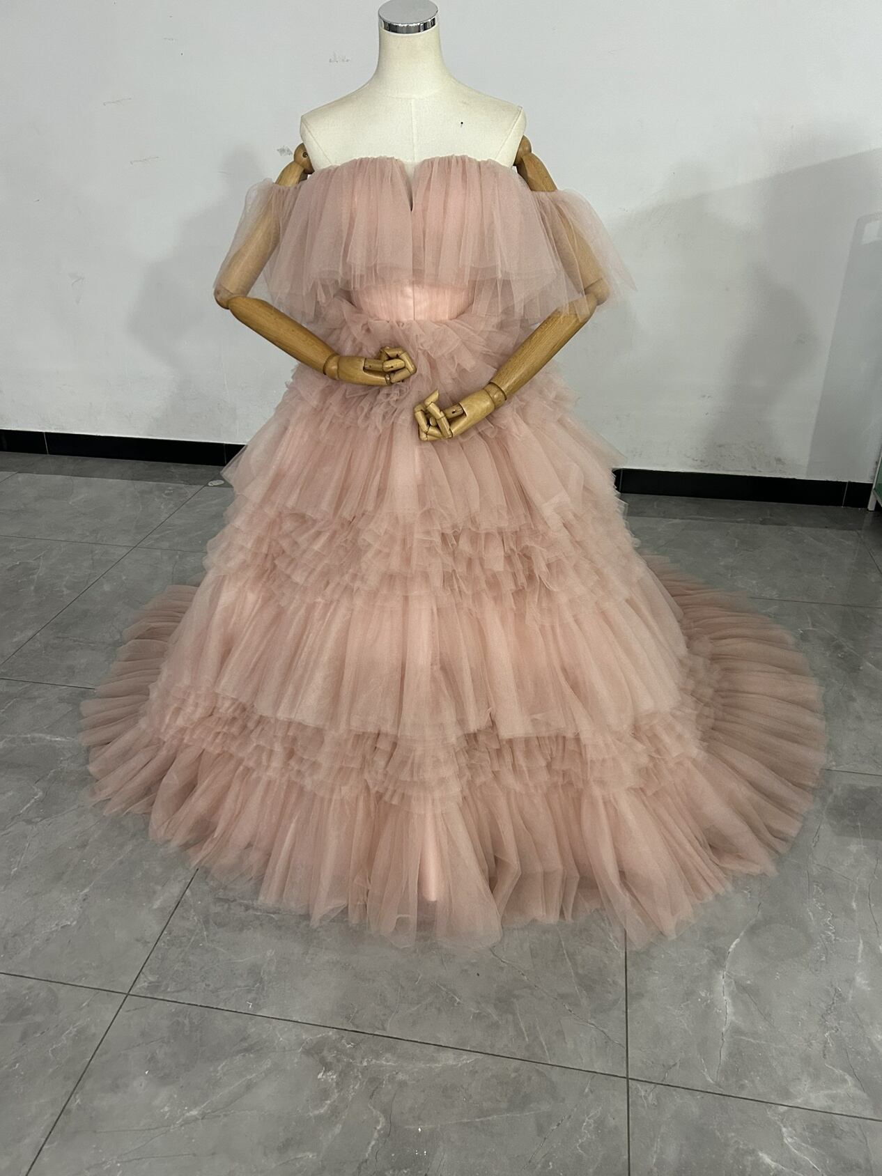 ピンクカラードレス チュールドレス フリルオフショルダー お色直し ふわふわ もこもこドレ