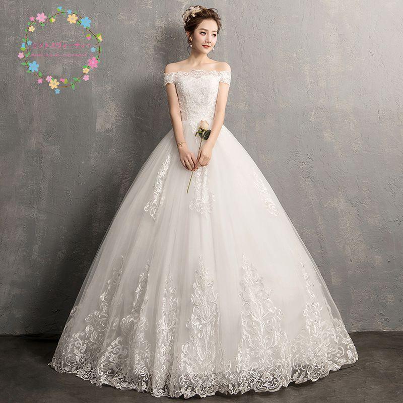 豪華! オフショルダー ウエディングドレス プリンセスライン 前撮り/花嫁/結婚式/披露宴/