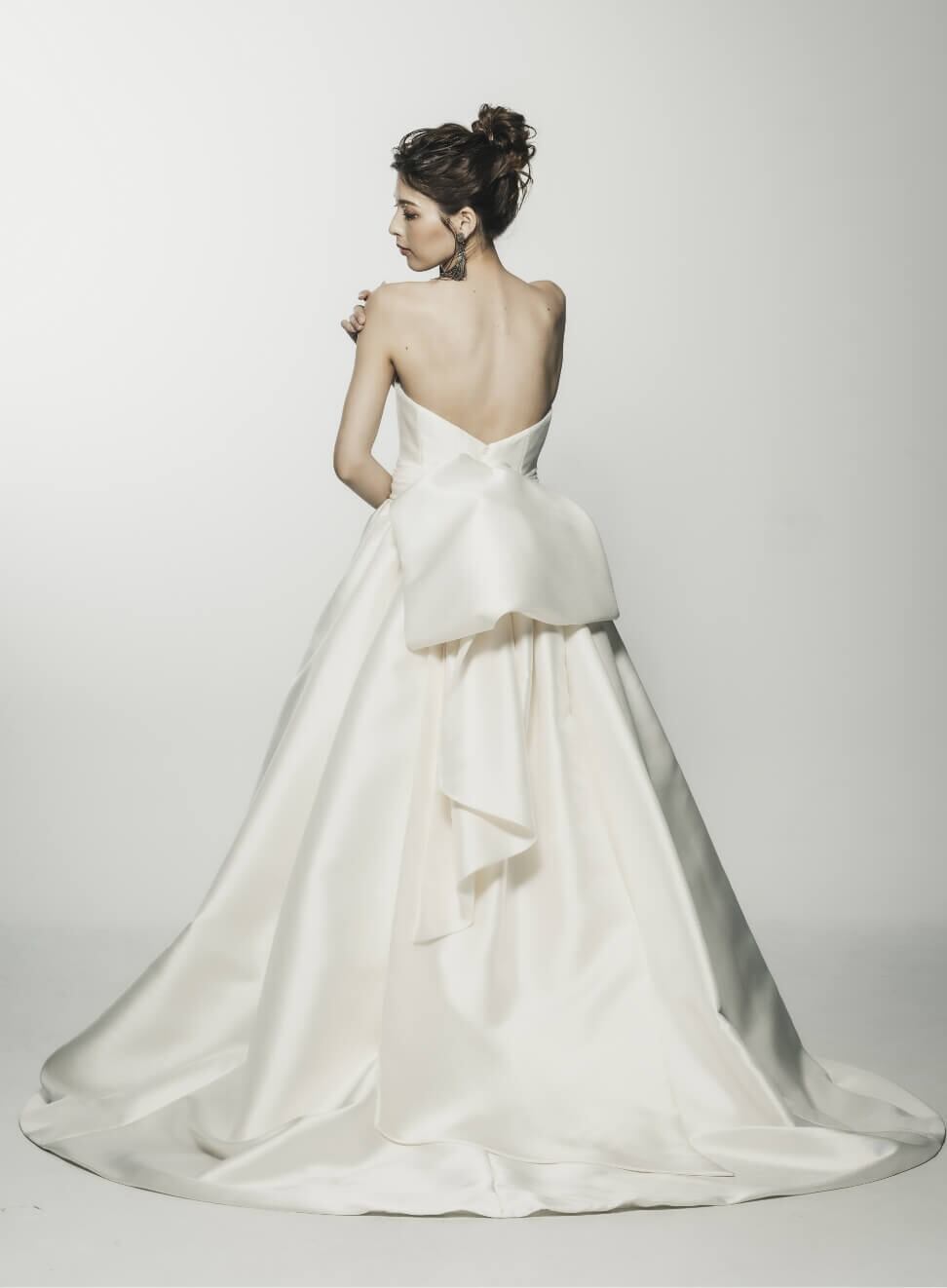 豪華!ミカドシルク クラシックなウエディングドレス バックスタイル バックリボン ロングトレーン Aラインドレス 花嫁/前撮り/結婚式
