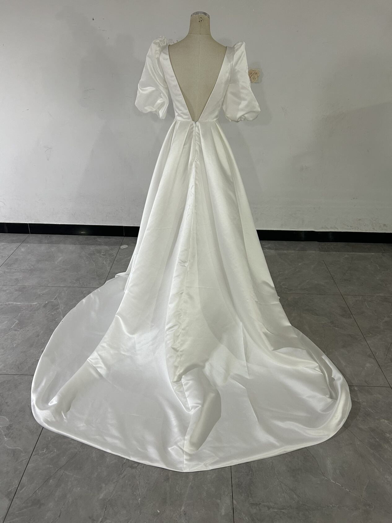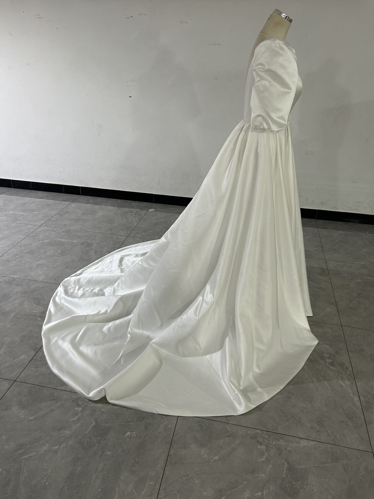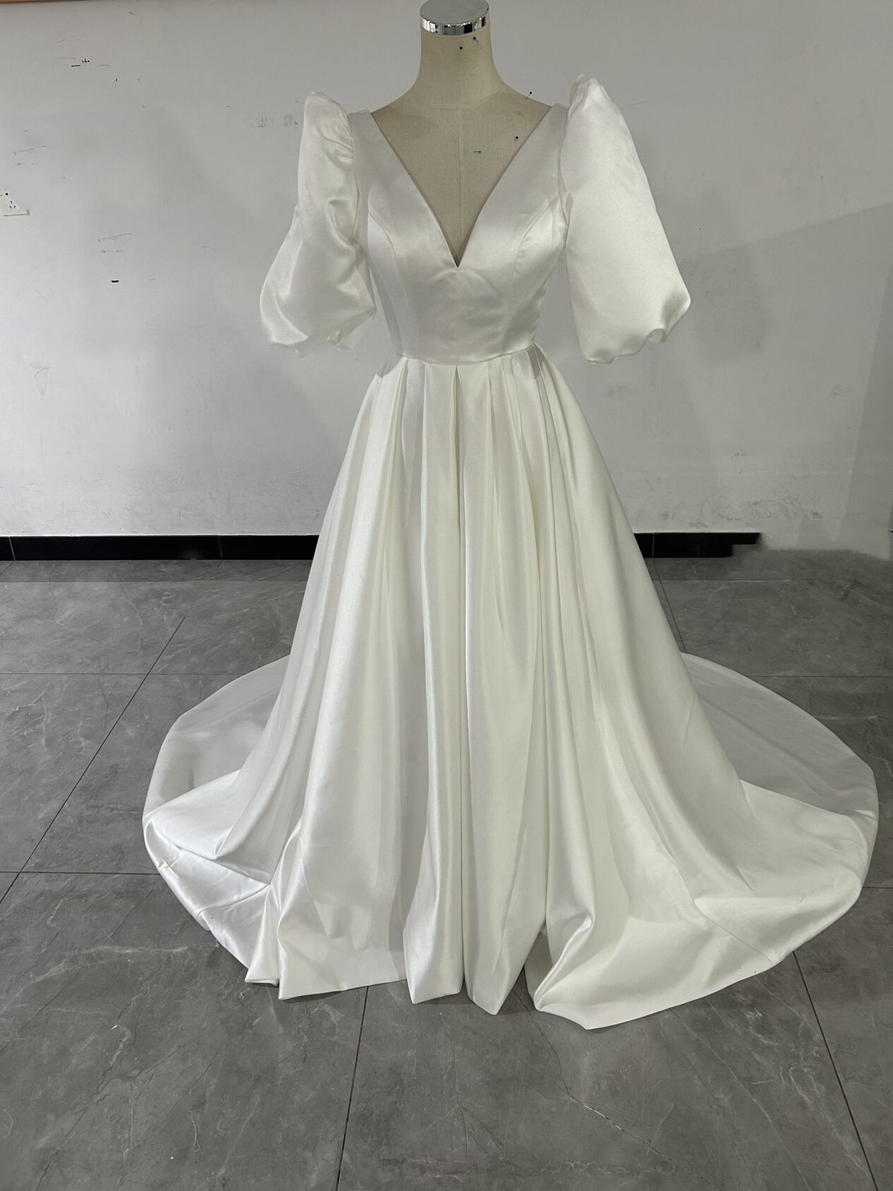 人気上昇!Vネック 七分袖丈 オフホワイト ウエディングドレス 結婚式/前撮り