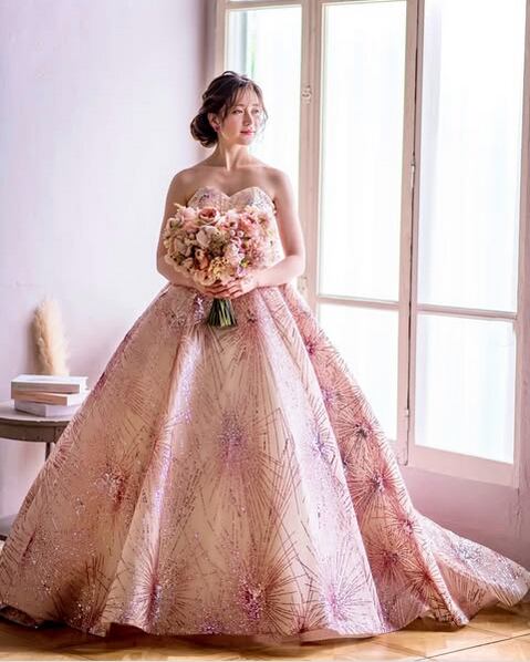 美品!ピンク紫 カラードレス ベアトップ ハートカット パーティードレス ビスチェドレス キラキララメチュール お色直し ナイトドレス