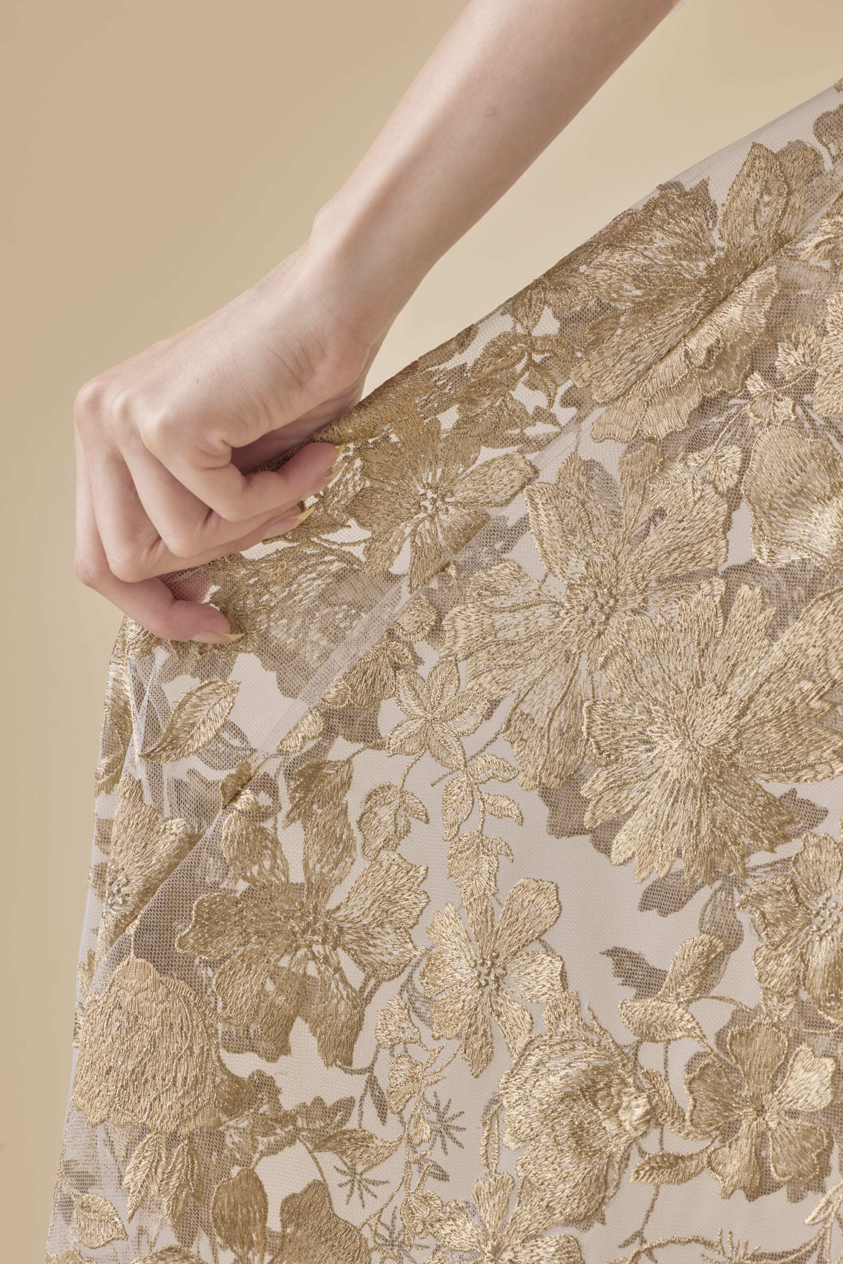 美品!大振りのフラワーモチーフ ゴールドシャンパン カラードレス マーメイドシルエット ウエディングドレス パーティードレス 演奏会