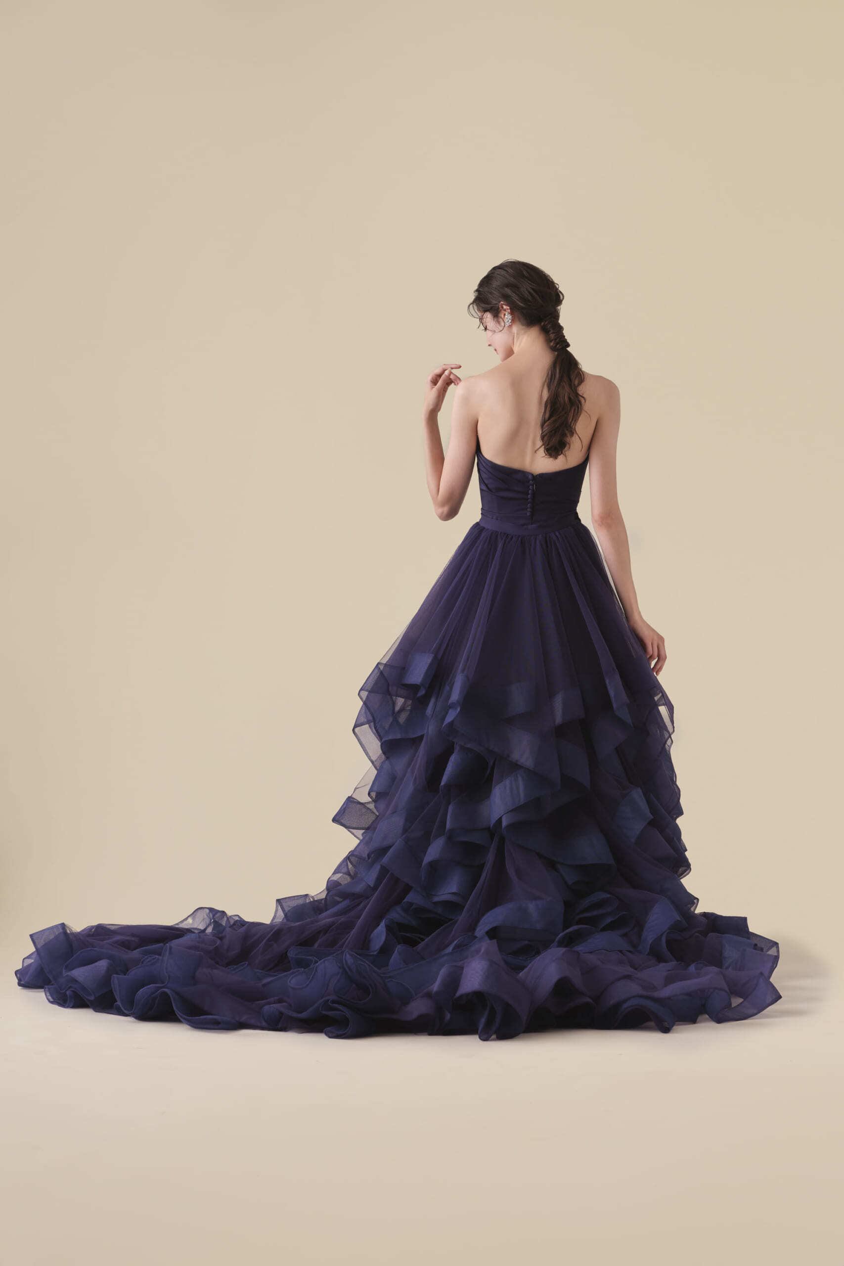 美品!2WAYスタイル マーメイドドレスとオーバースカート ネイビーブルー カラードレス パーティードレス ランダムなフリルとドレープ