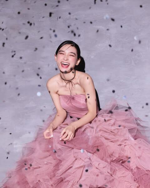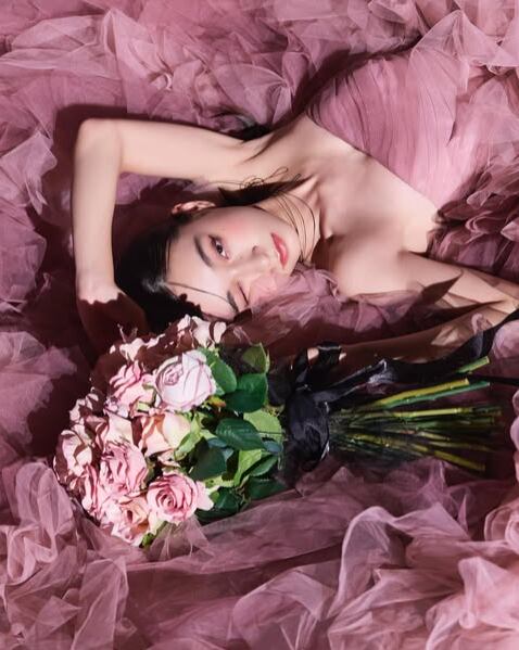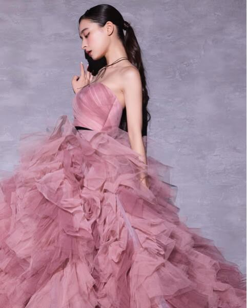 豪華!ピンク もこもこカラードレス 2色のグラデーション フリルドレス ボリュームたっぷりのふわふわチュールドレス ロングトレーン お色直し