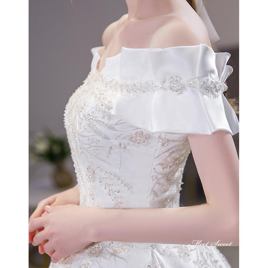 ウェディングドレス ロングドレス プリンセスラインドレス オフショルダー 二次会 結婚式 前撮り 花嫁 ウエディングドレス サテン 海外挙式 ブライダル | David1021k Dress(ダヴィドレス)