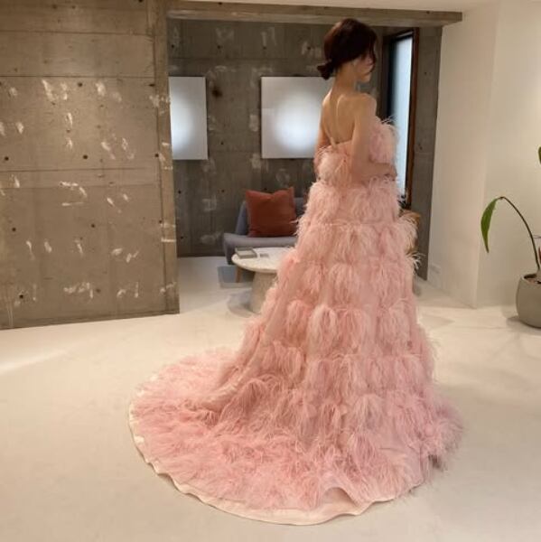 贅沢!ピンク ファーフェザー もふもふカラードレス 美しいボディライン スレンダーライン ラグジュアリーフェミニン お色直し パーティードレス