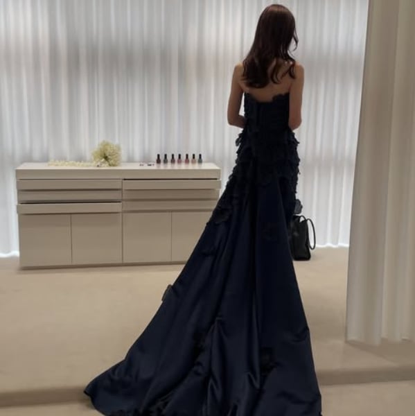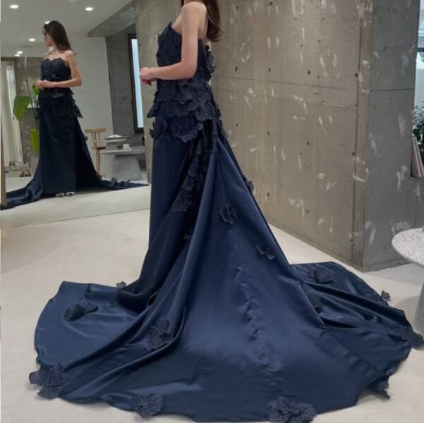 美品!ネイビーブルー ダークブルー カラードレス フラワードレス 美しいボディライン パーティードレス 演奏会/お色直し