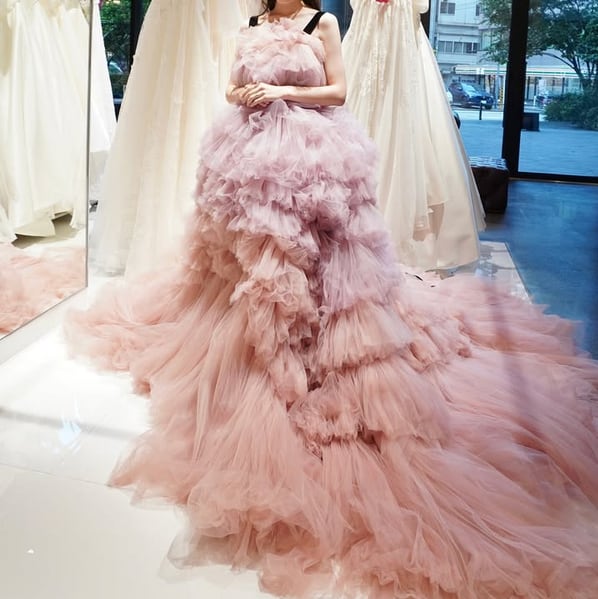 美品!黒ベロアリボン ふわふわカラードレス ウエディングドレス ティアードスタイル 韓国風ドレス ボリュームドレス フリル