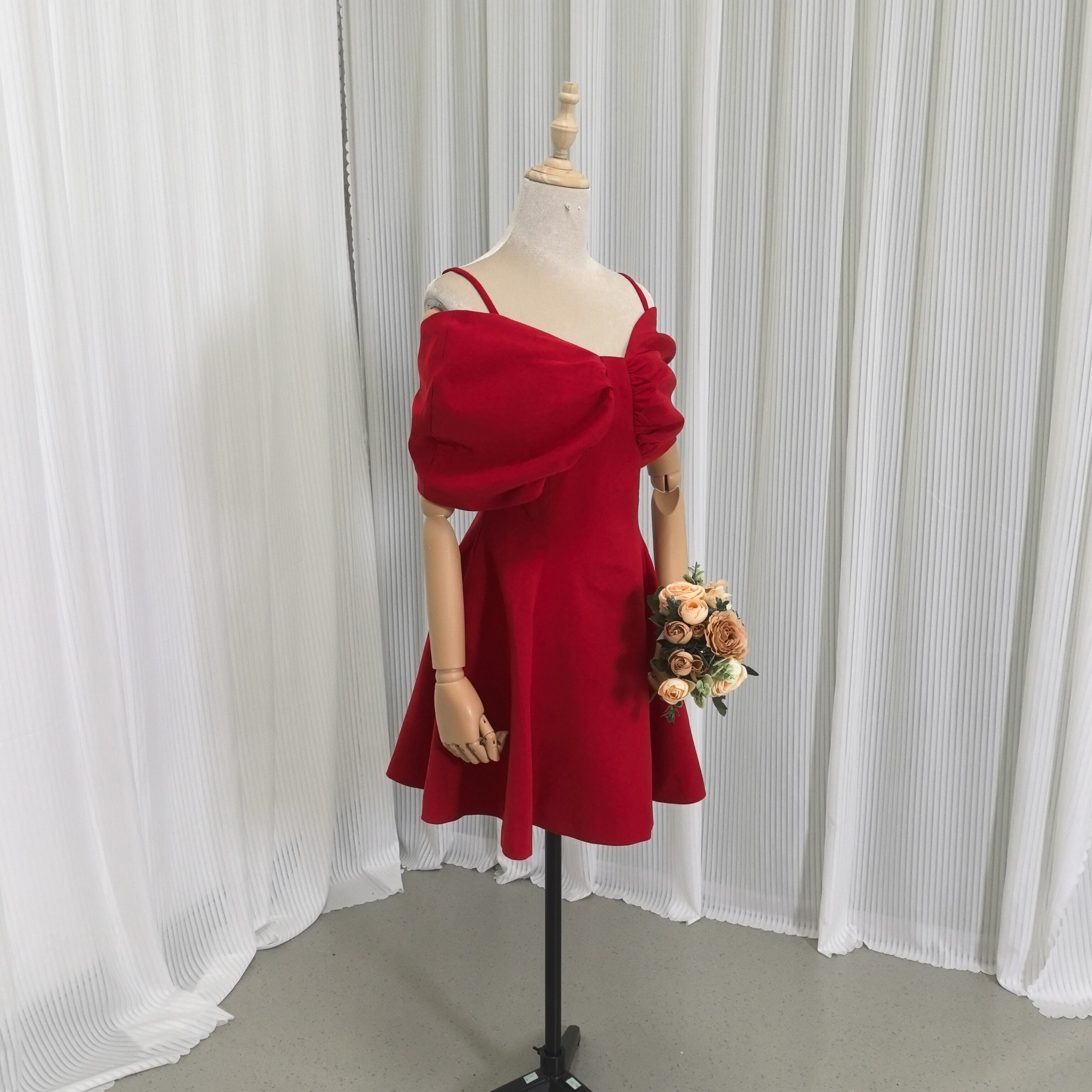 美品! パーティードレス 赤 ミニドレス キャミソール 大きなリボン お呼ばれ/二次会/2次会/合コン/デート/謝恩会/ パーティー