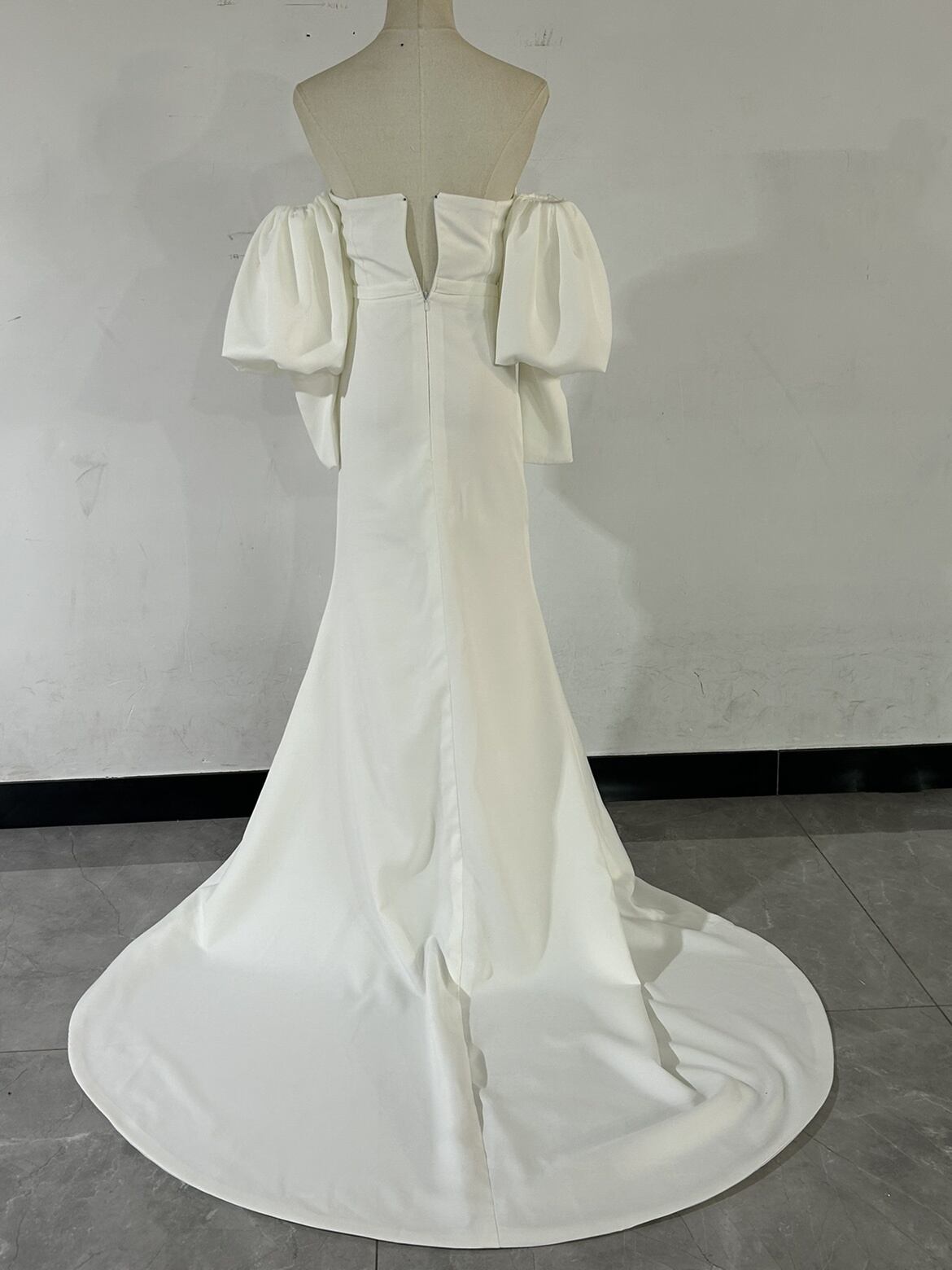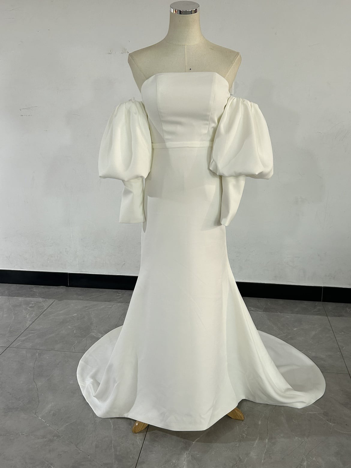 スレンダーライン パフスリーブ オフショルダー ウェディングドレス ベアトップ お呼ばれ/二次会